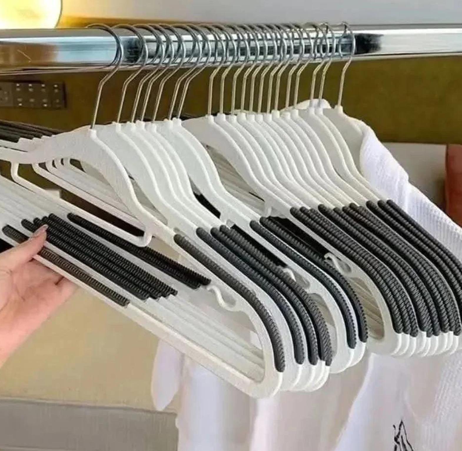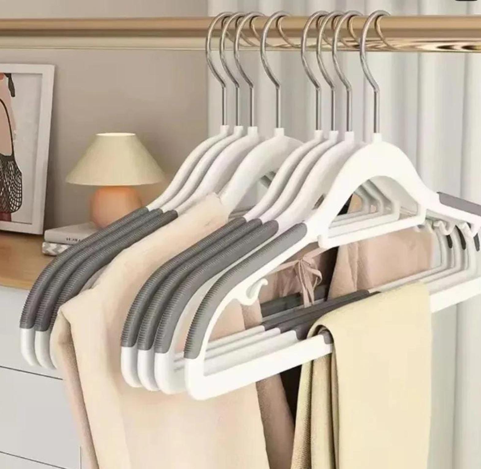 A set of 10 strong, lightweight hangers designed to keep your wardrobe neat and organized.