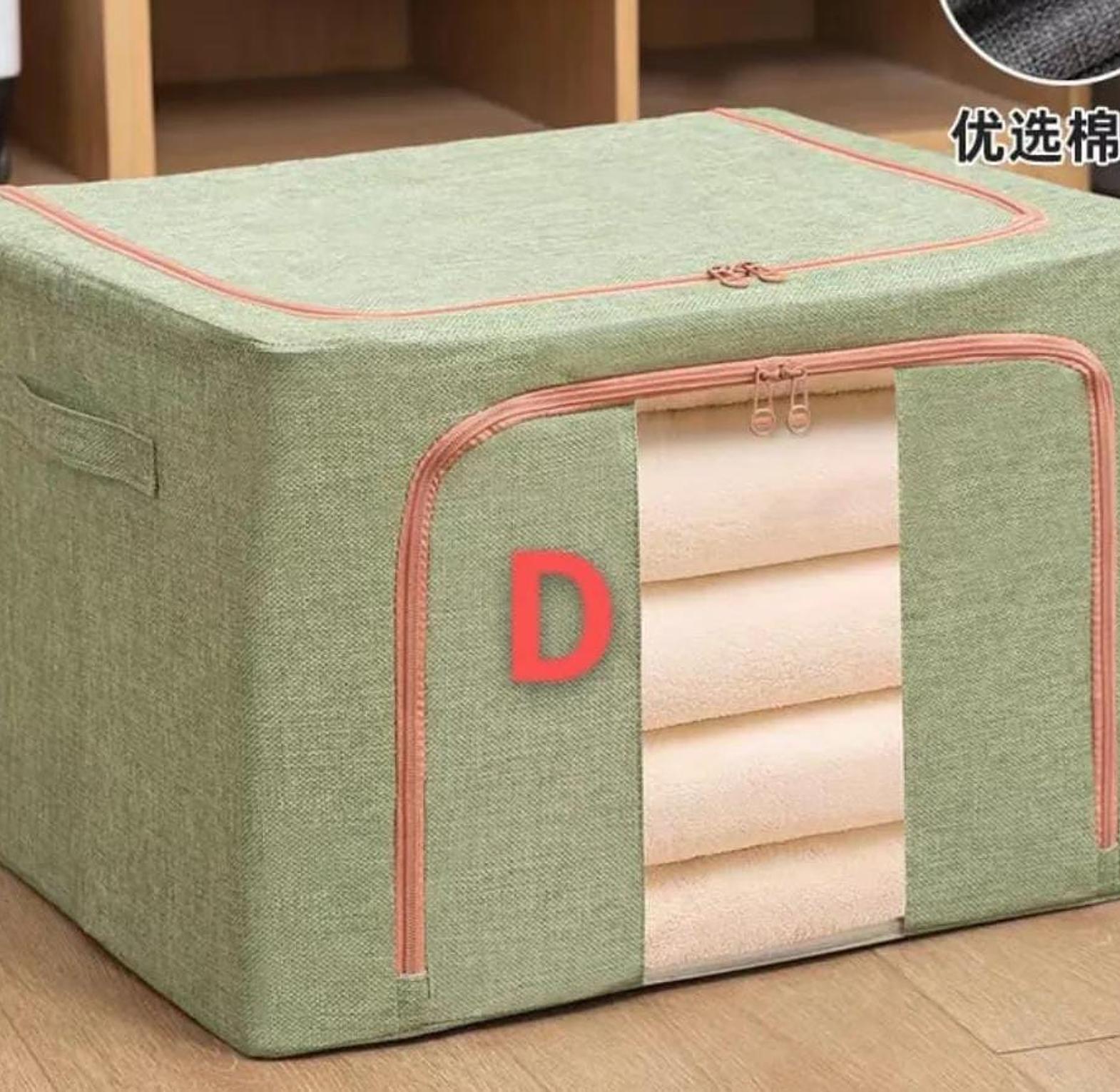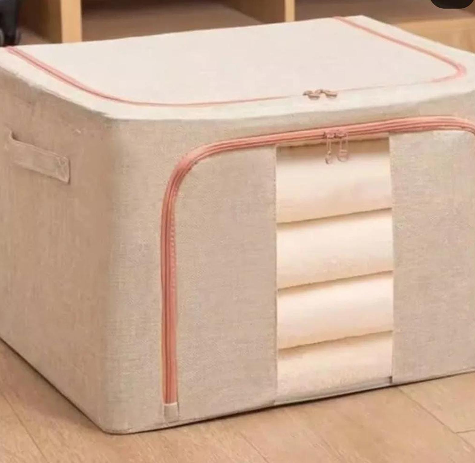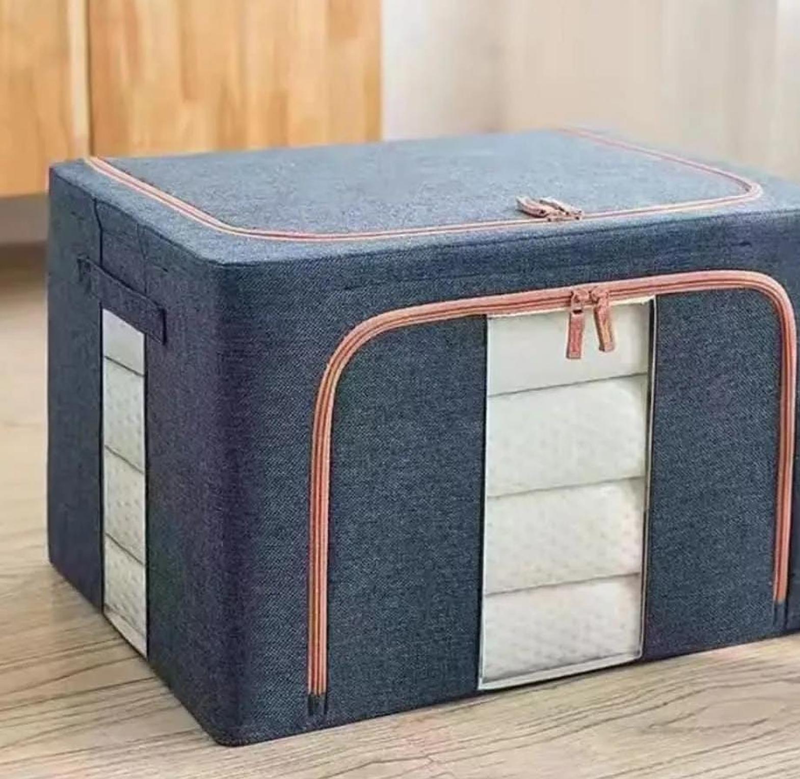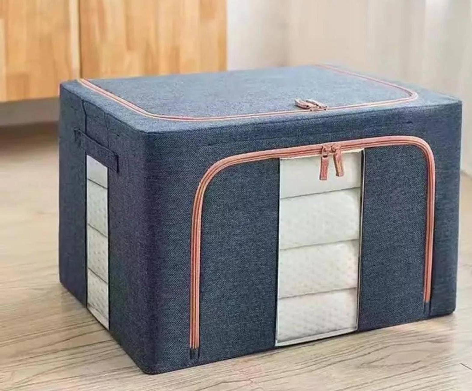 A spacious 100L zipped storage box designed to neatly store clothes, bedding, and other household items.