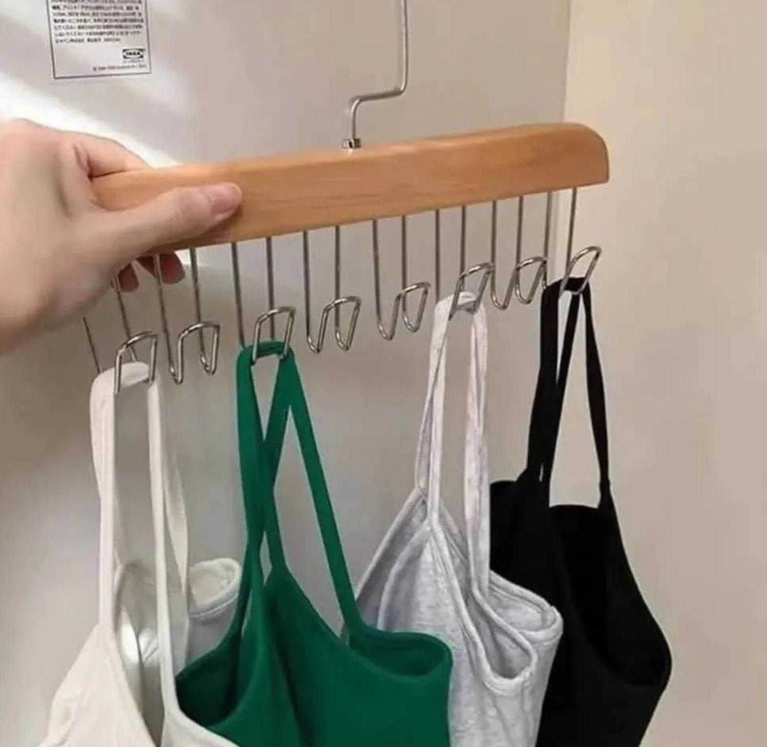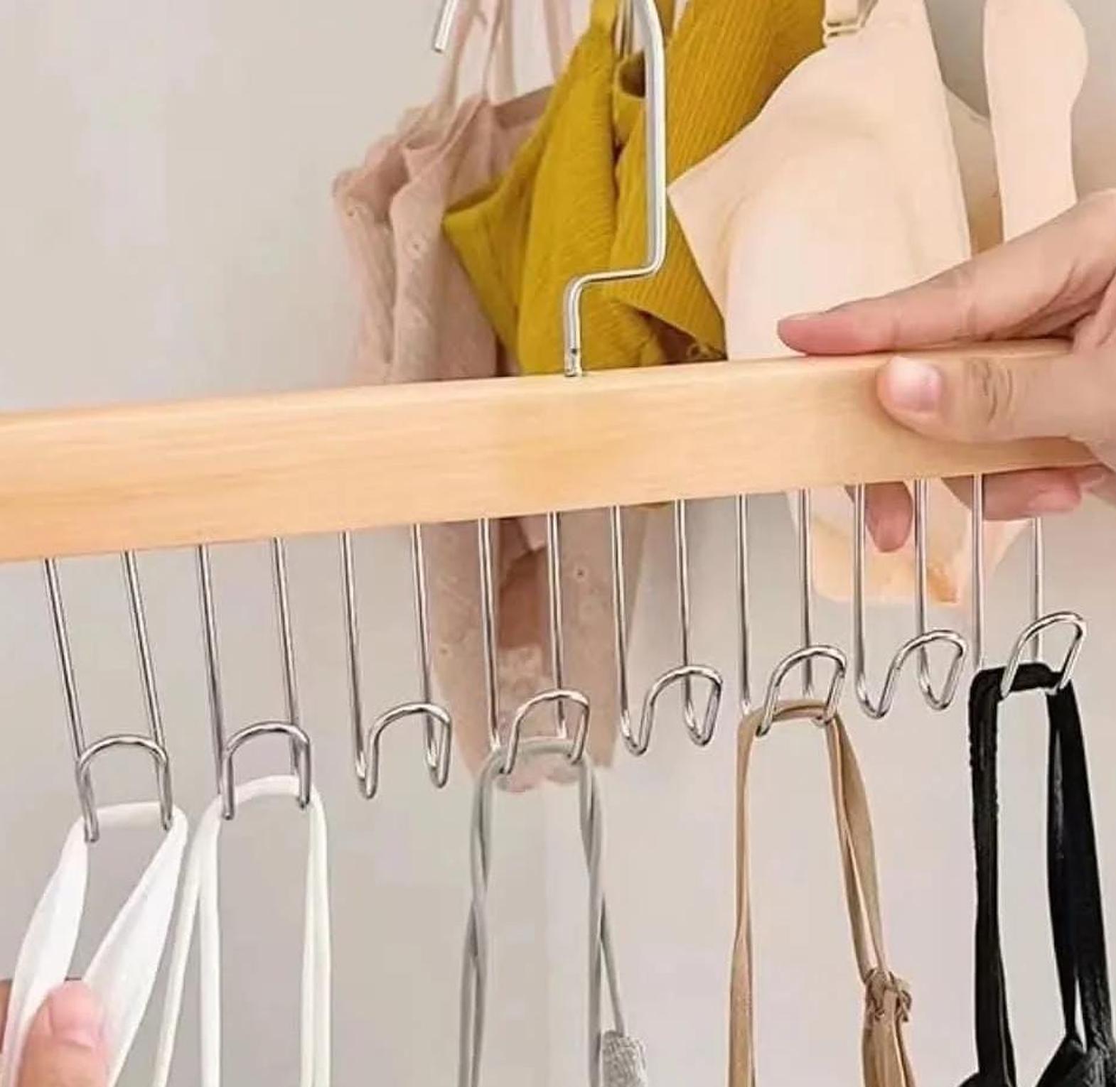 A stylish wooden wall hanger with 8 sturdy hooks, perfect for organizing clothes, bags, keys, towels, and accessories with ease and charm.