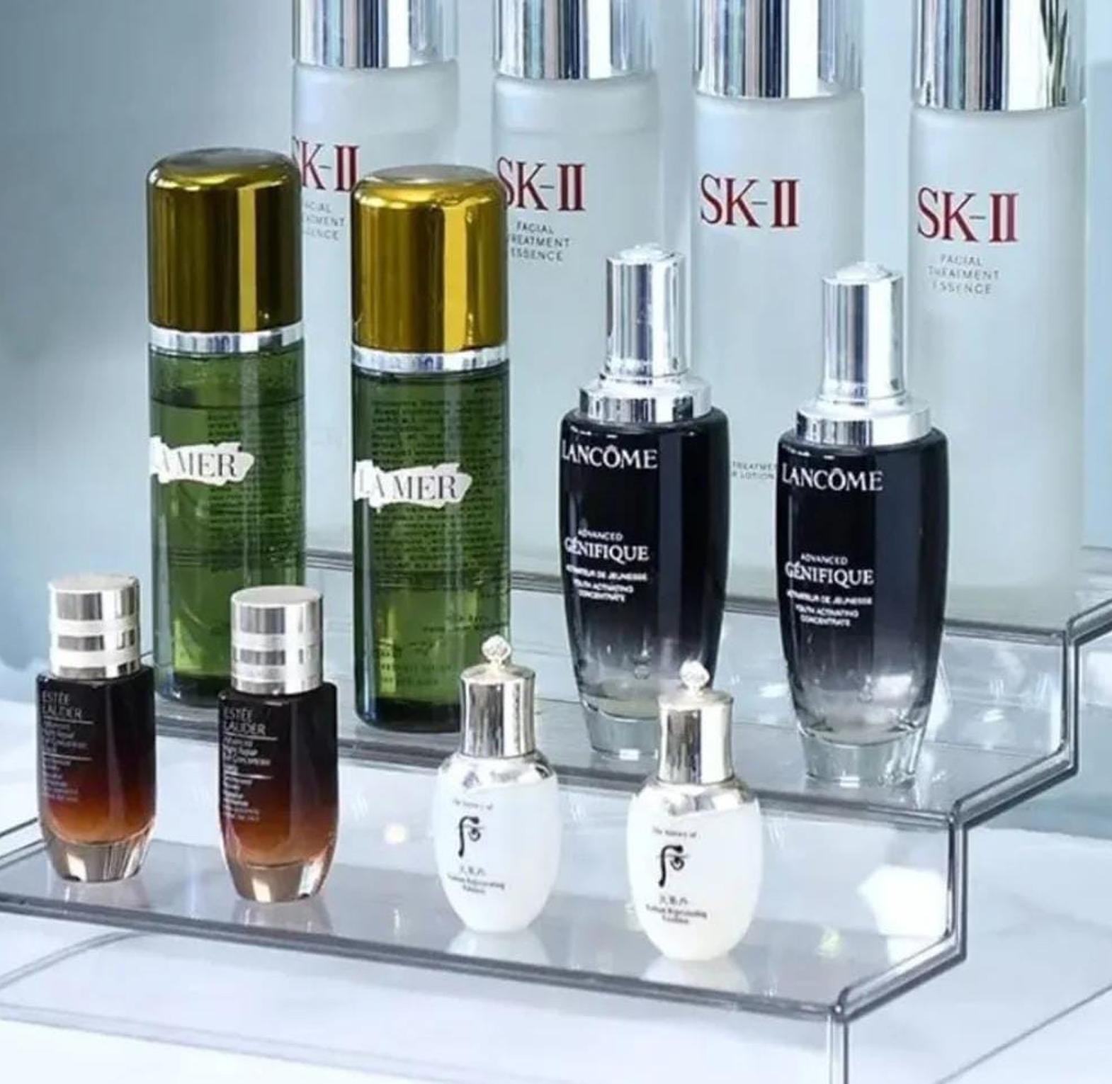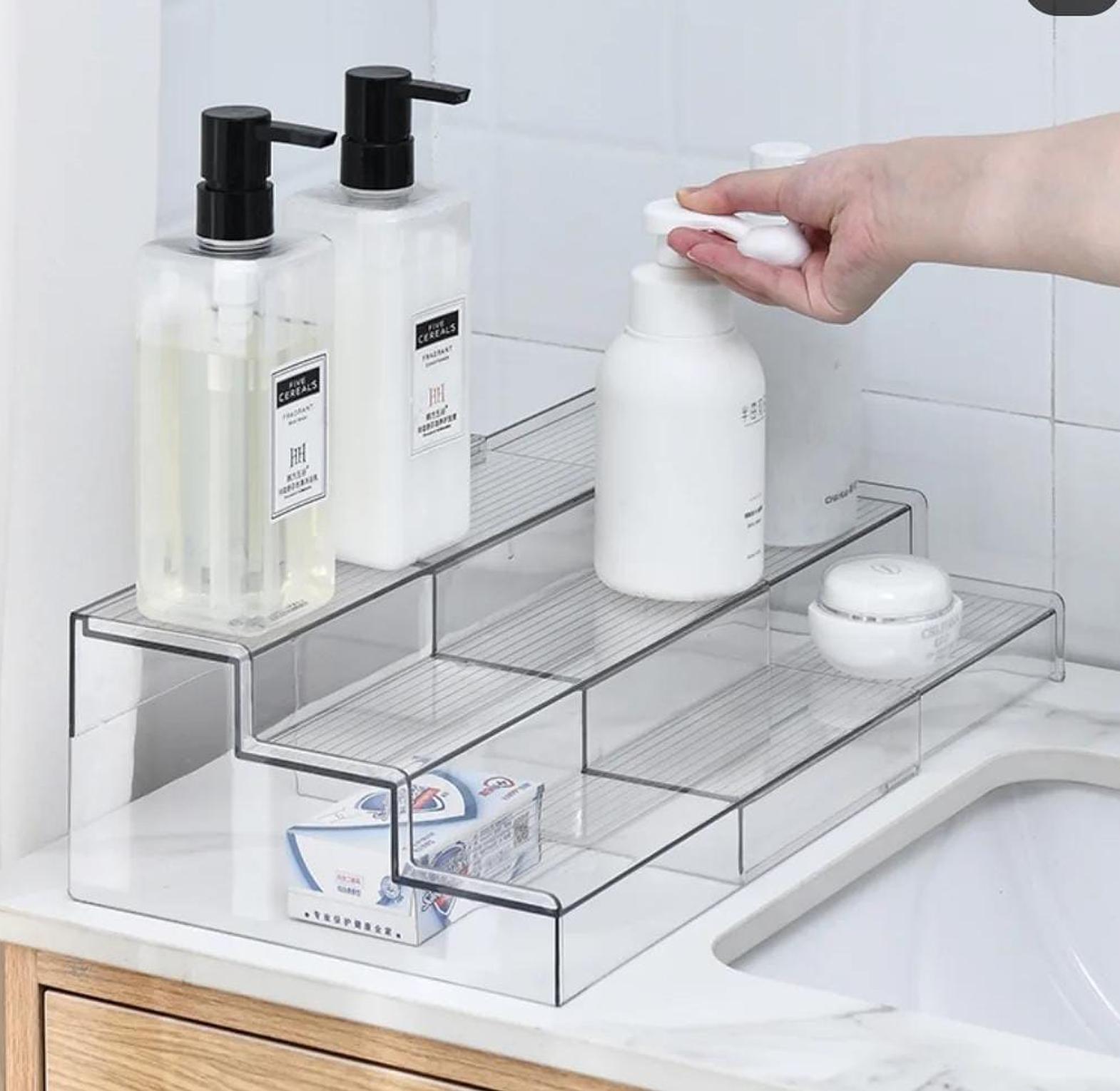 A sleek and sturdy 3-tier acrylic rack designed to expand and organize your spices, cosmetics, or essentials with elegance and ease.