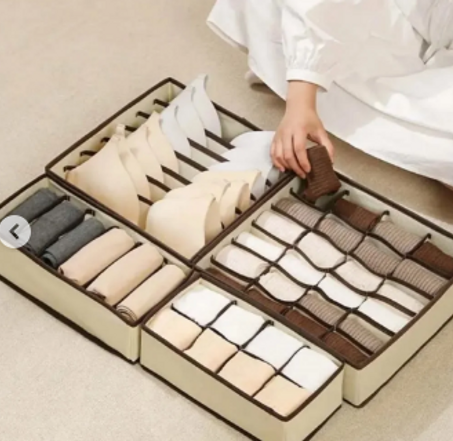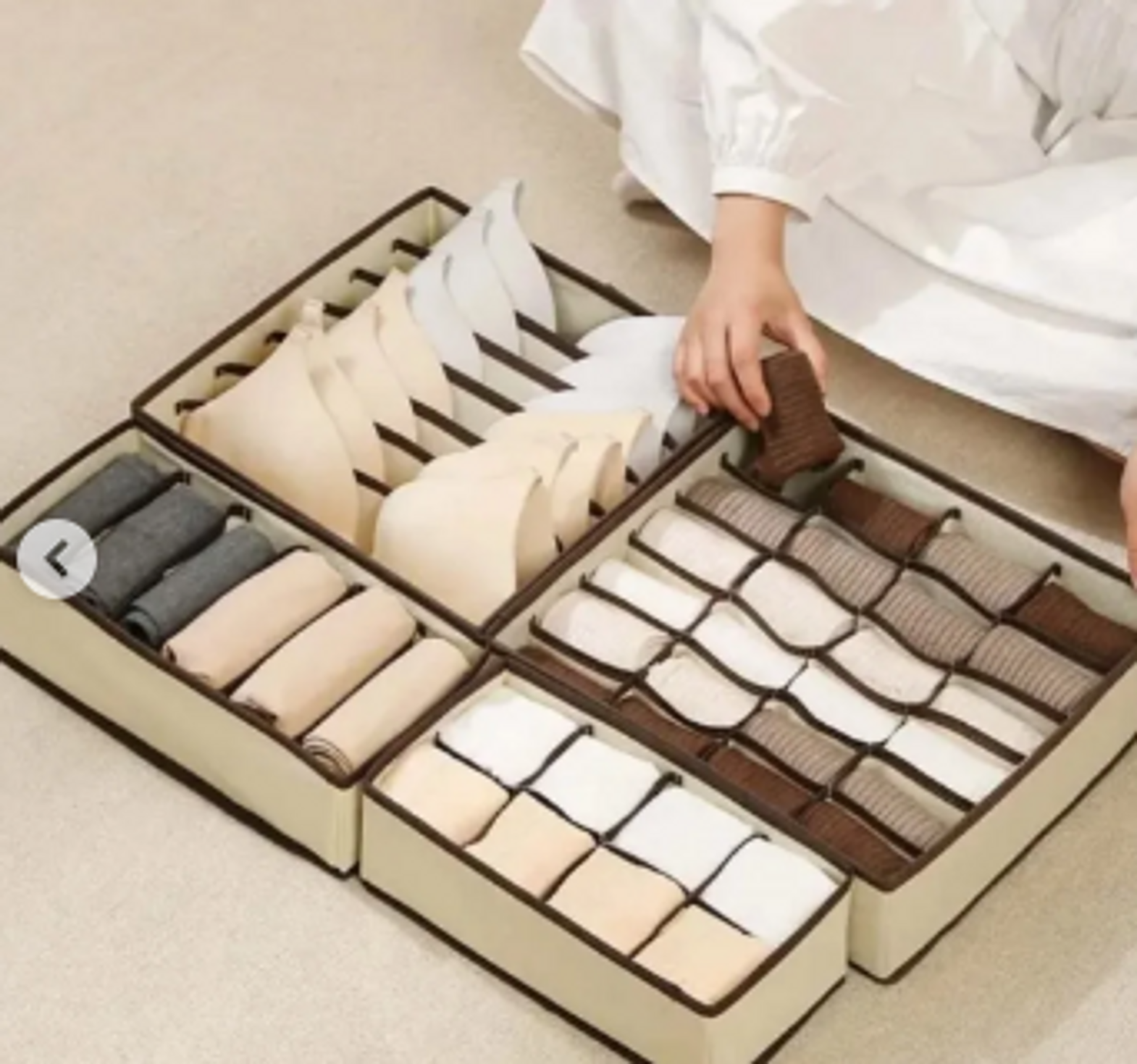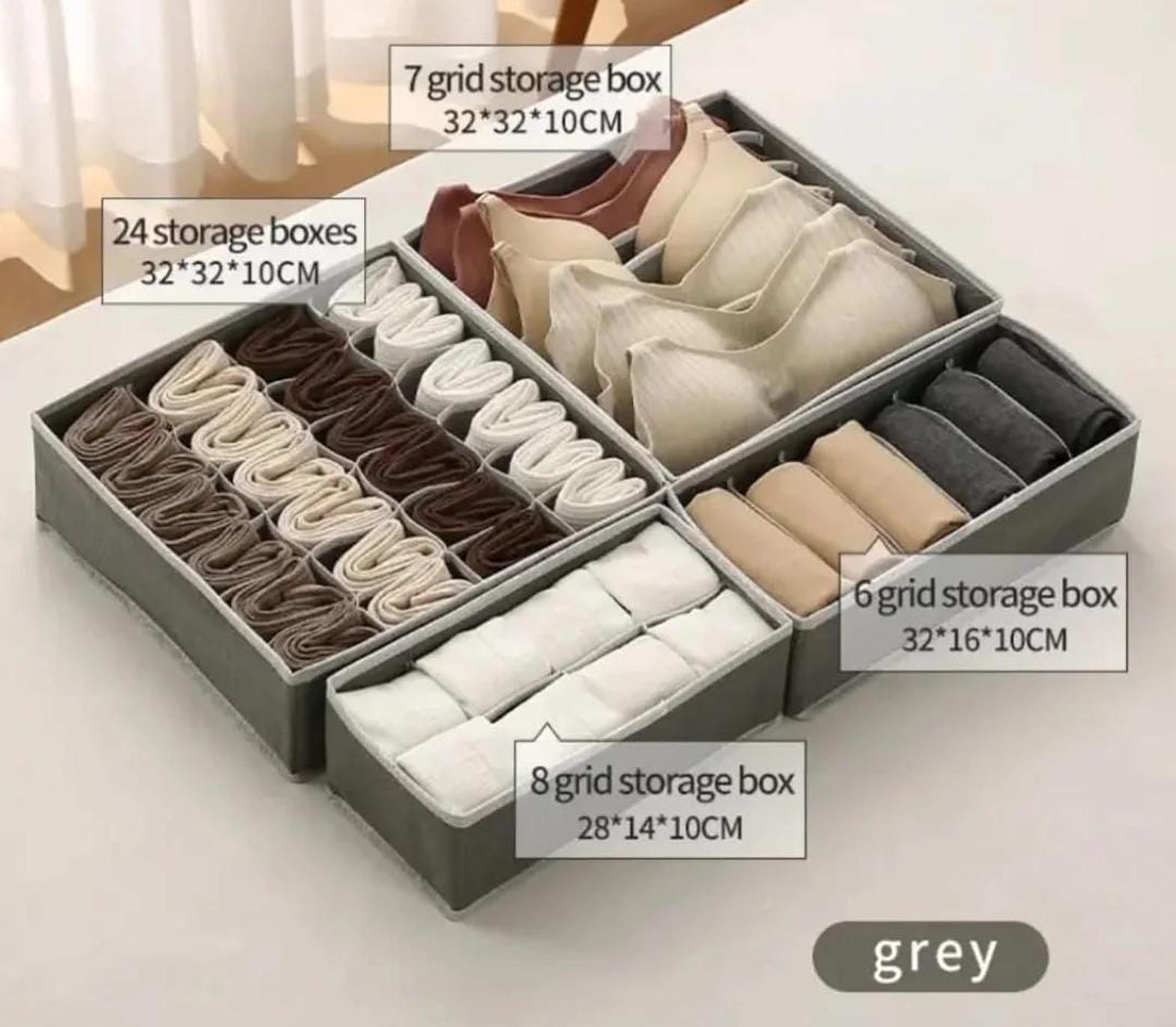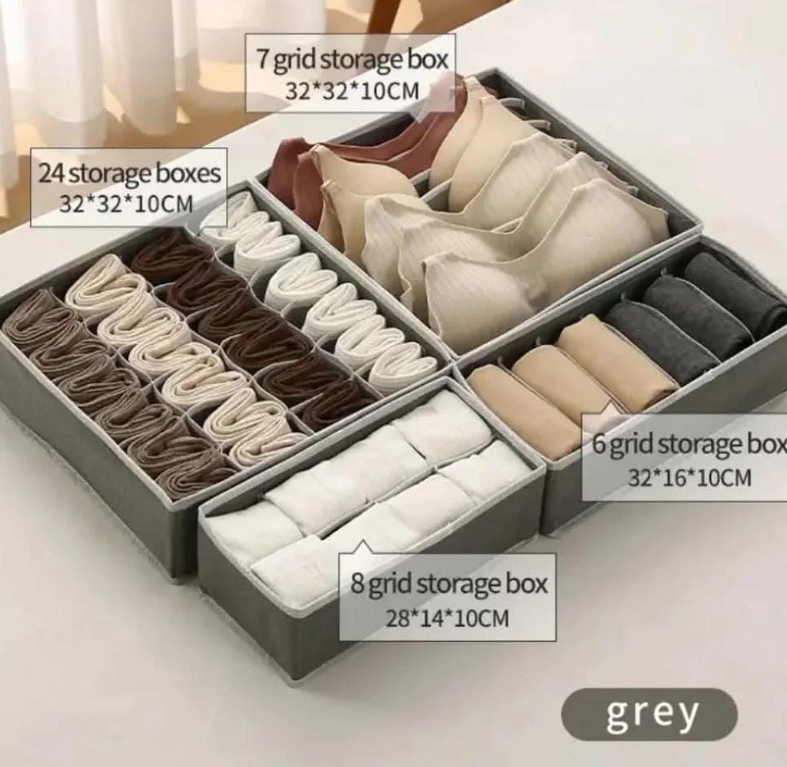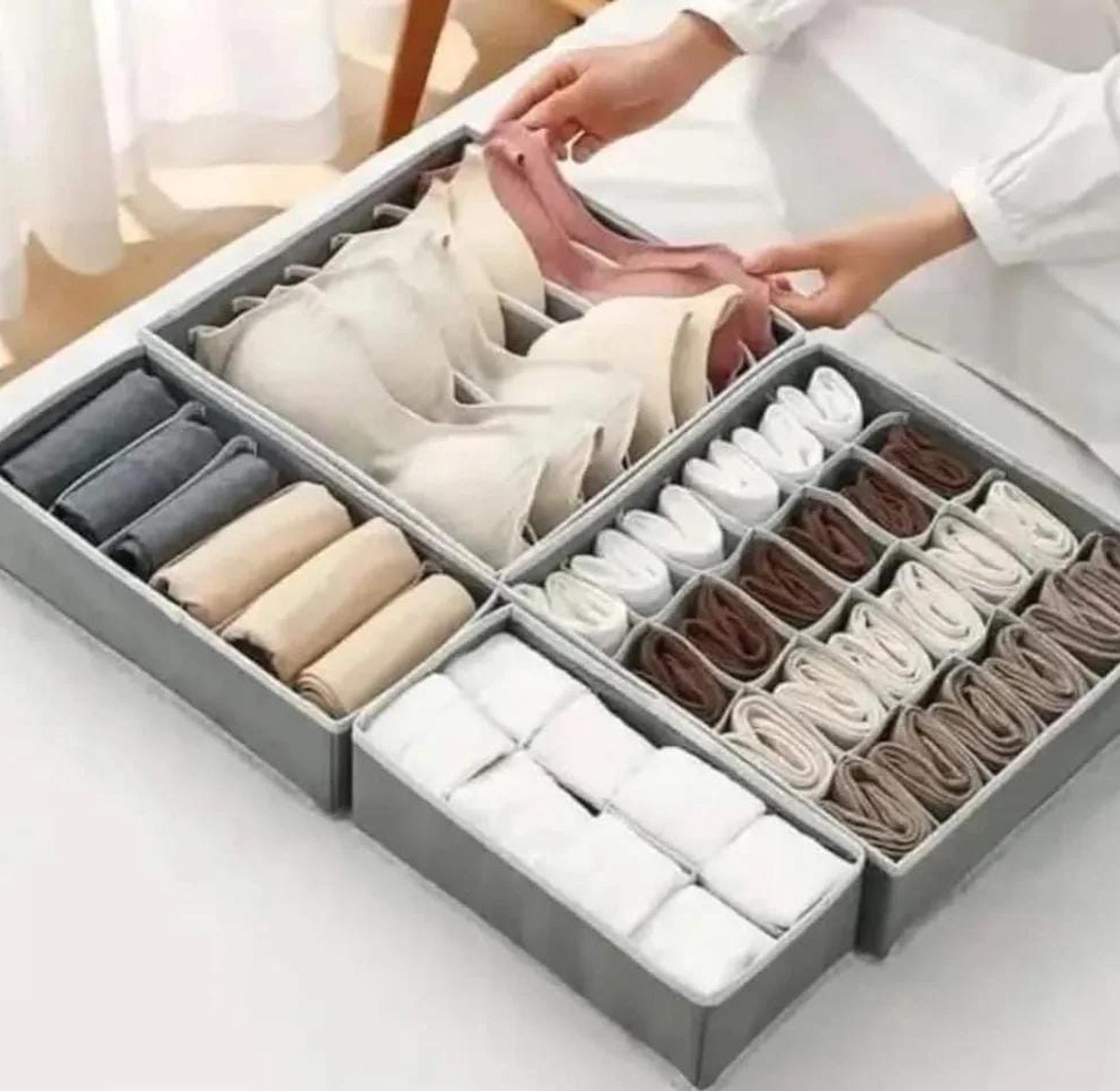 A versatile foldable organizer designed to neatly store bras, panties, socks, and more in one compact unit.