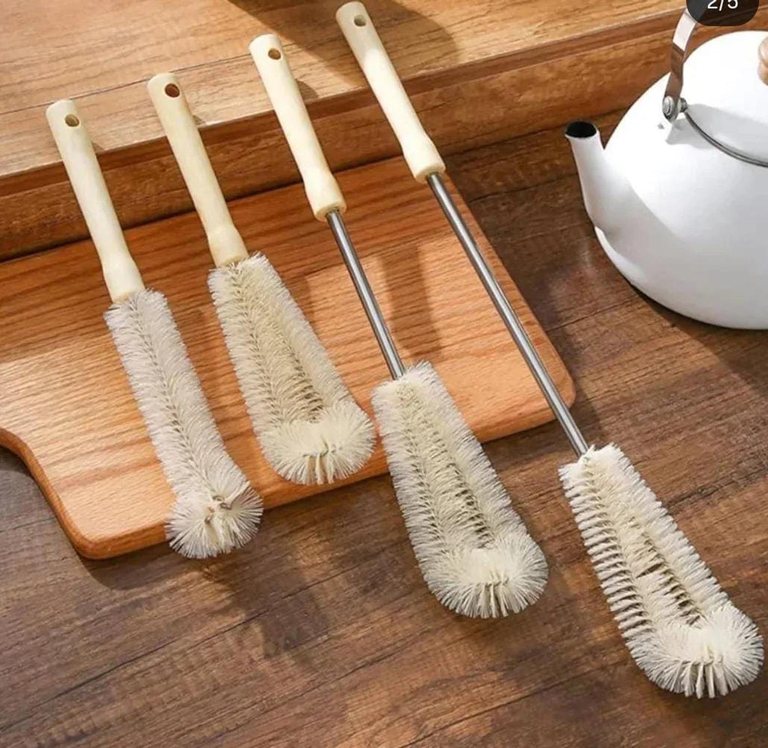 A set of 4 long-handled brushes designed to clean bottles, jars, flasks, and narrow containers effectively.