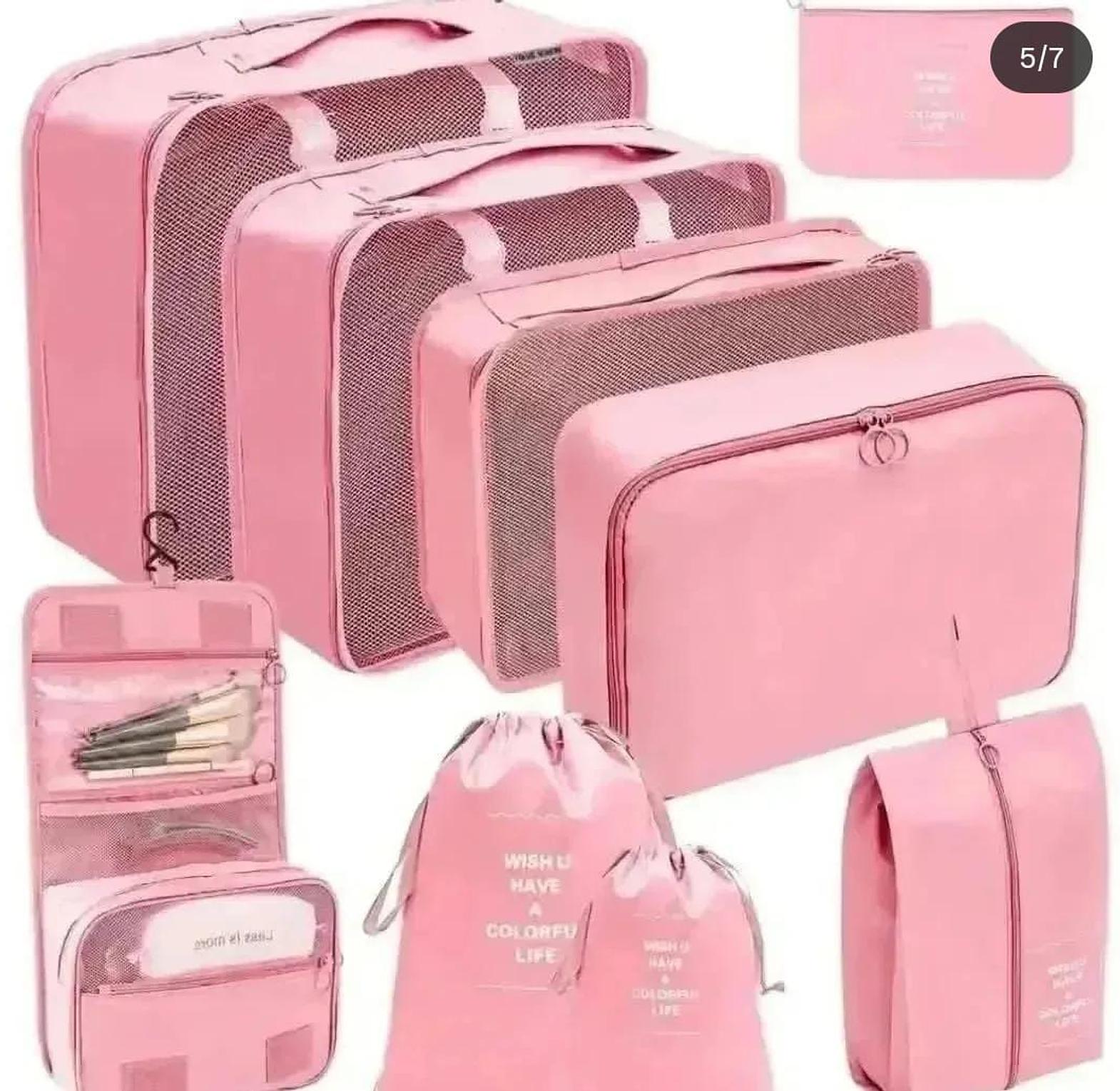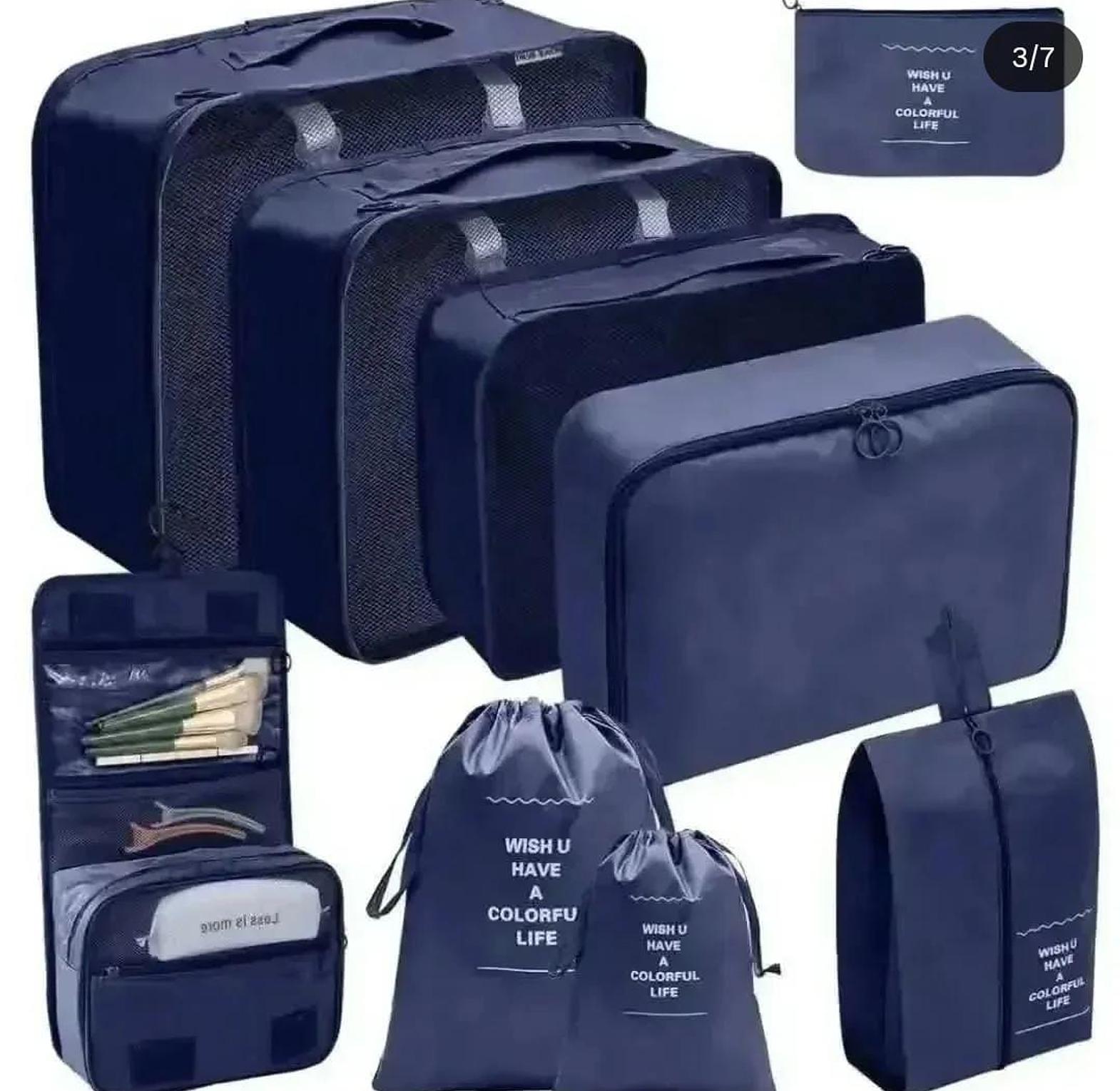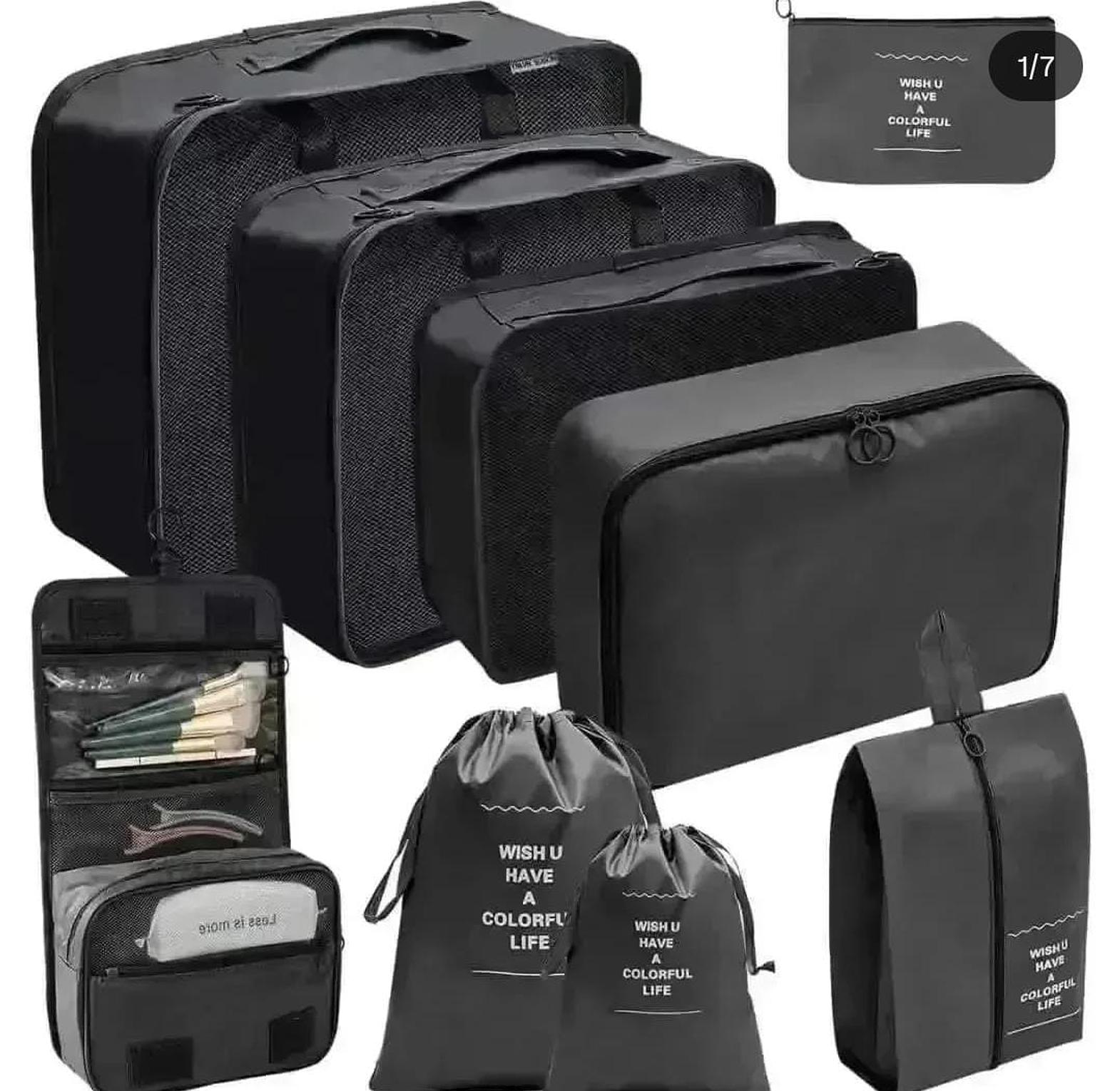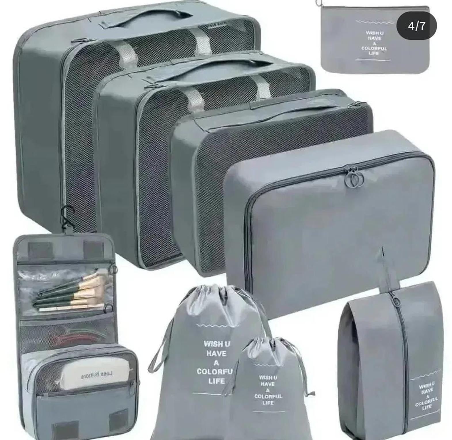 A complete 9-piece organizer set designed to keep your clothes, shoes, and travel essentials neatly packed.