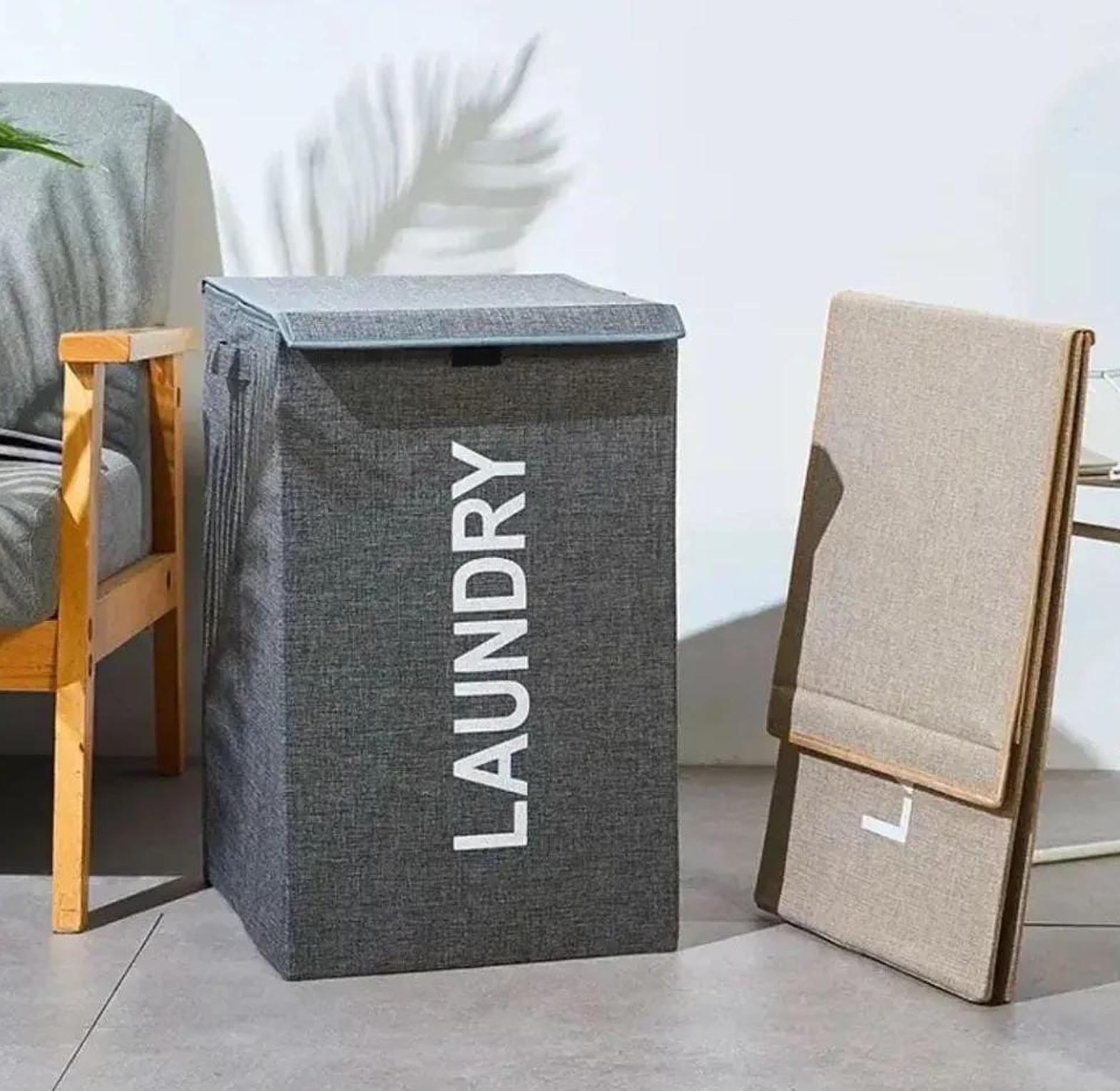 A spacious, foldable laundry basket designed with a secure lid and strong handles for convenient, tidy, and effortless laundry organization.