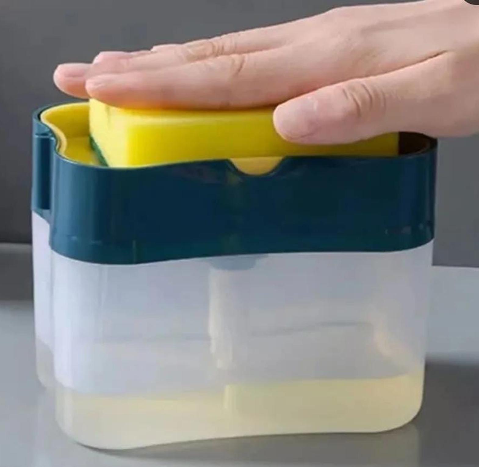 Wash smarter with a 2-in-1 soap dispenser and sponge holder for effortless cleaning