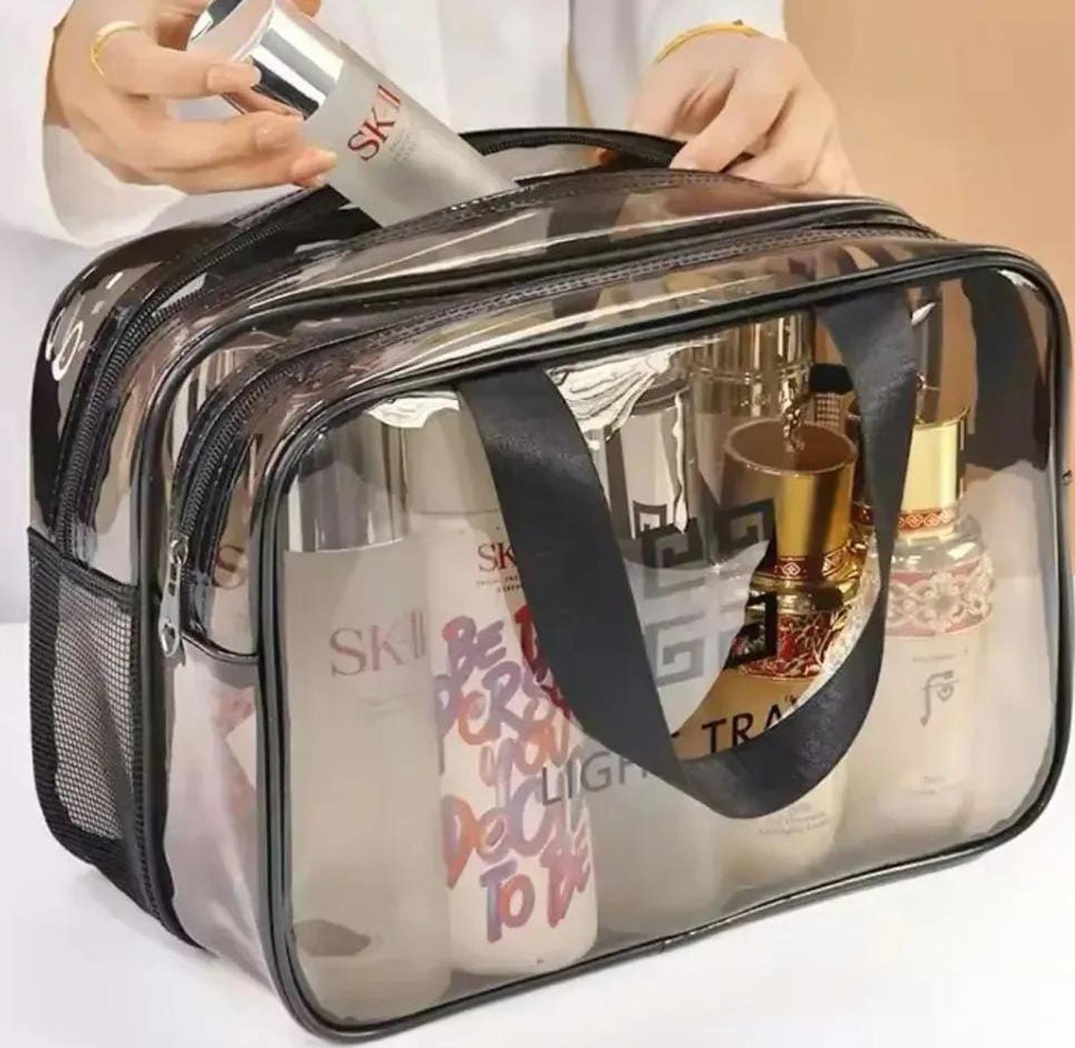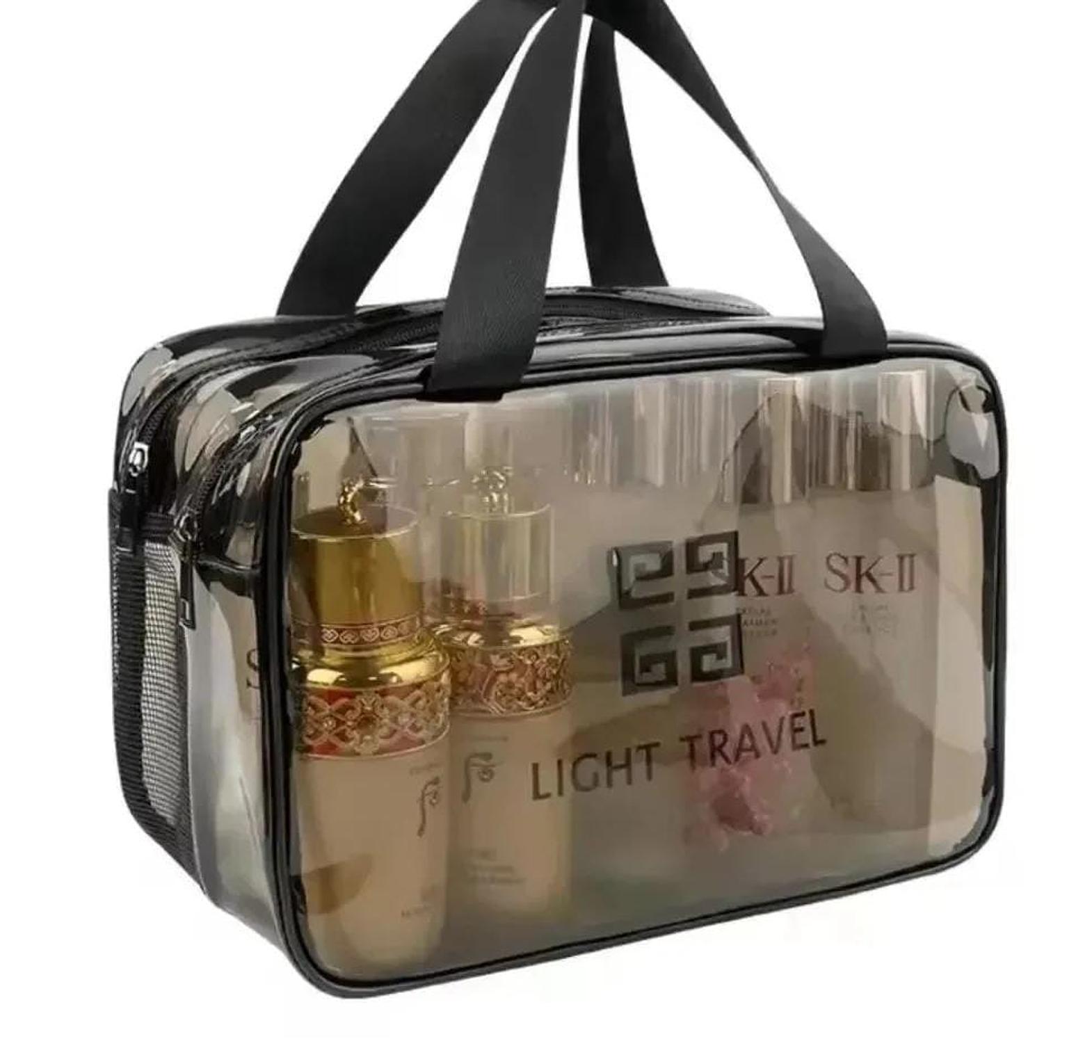 A compact yet roomy cosmetic bag designed to neatly organize your makeup, toiletries, and essentials wherever you go.