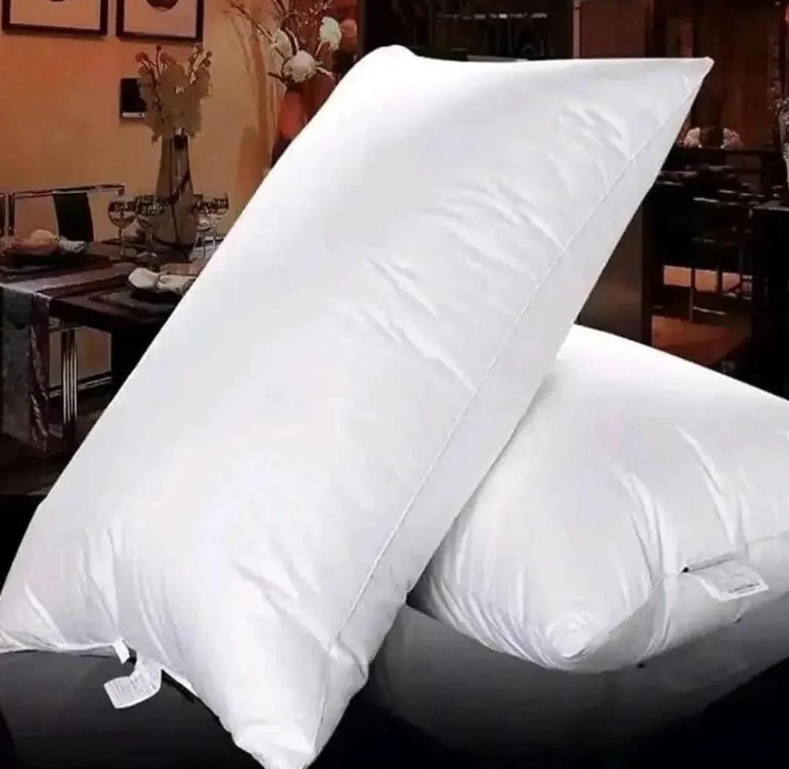 Soft and supportive white bed pillows made from compressed fibre, providing comfort for a restful night’s sleep.