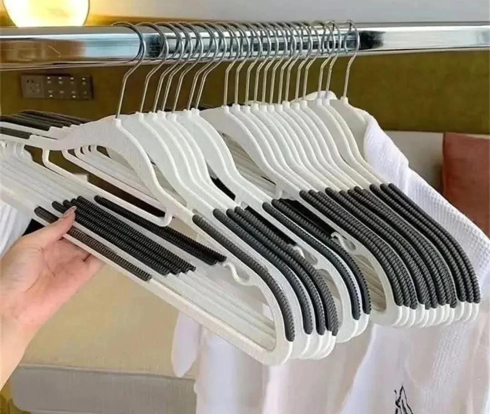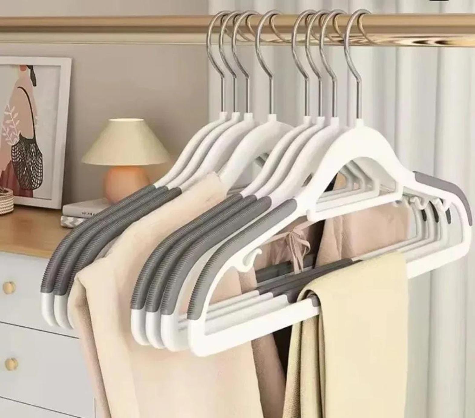 A set of 10 strong, lightweight hangers designed to keep your wardrobe neat and organized.