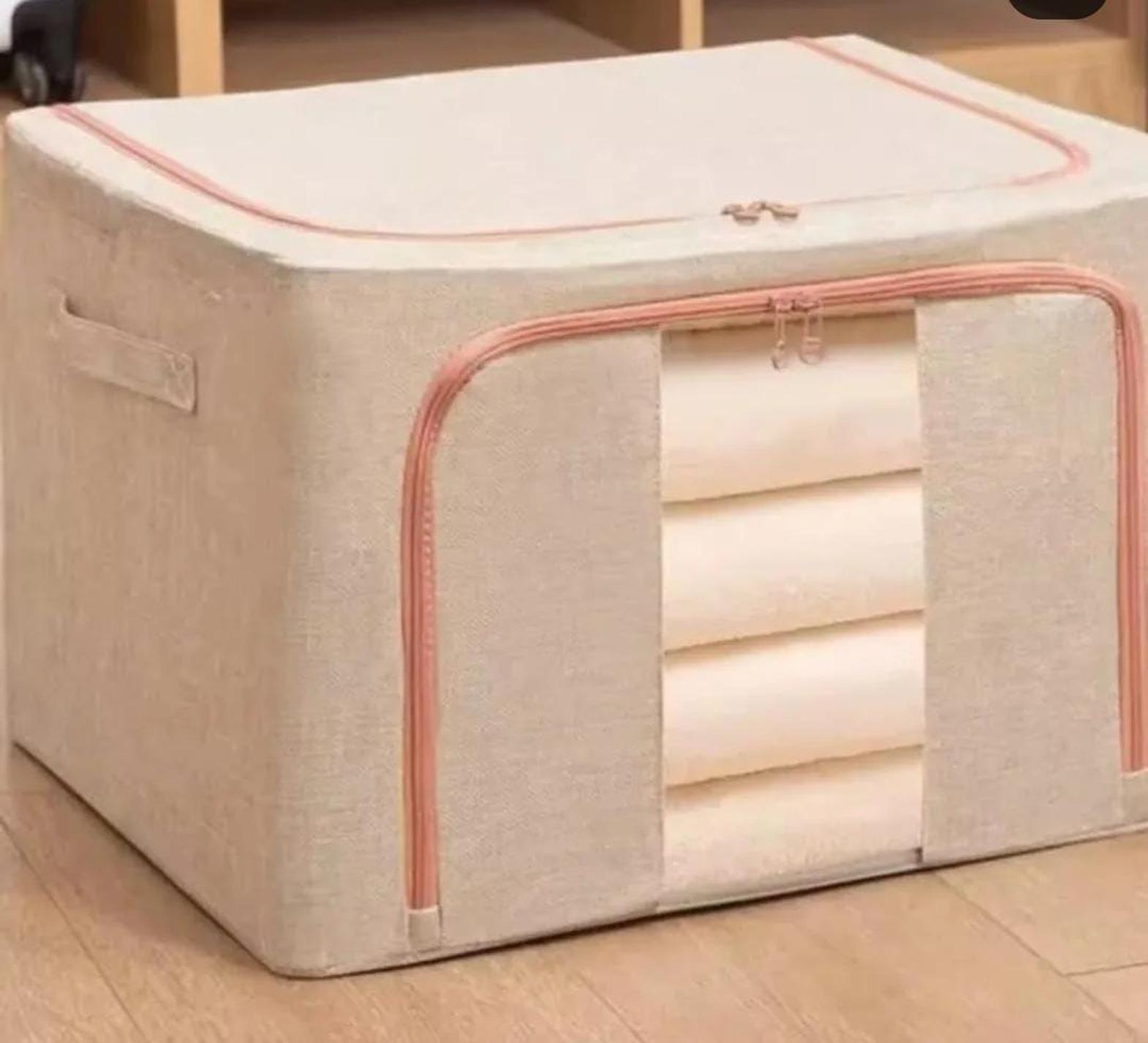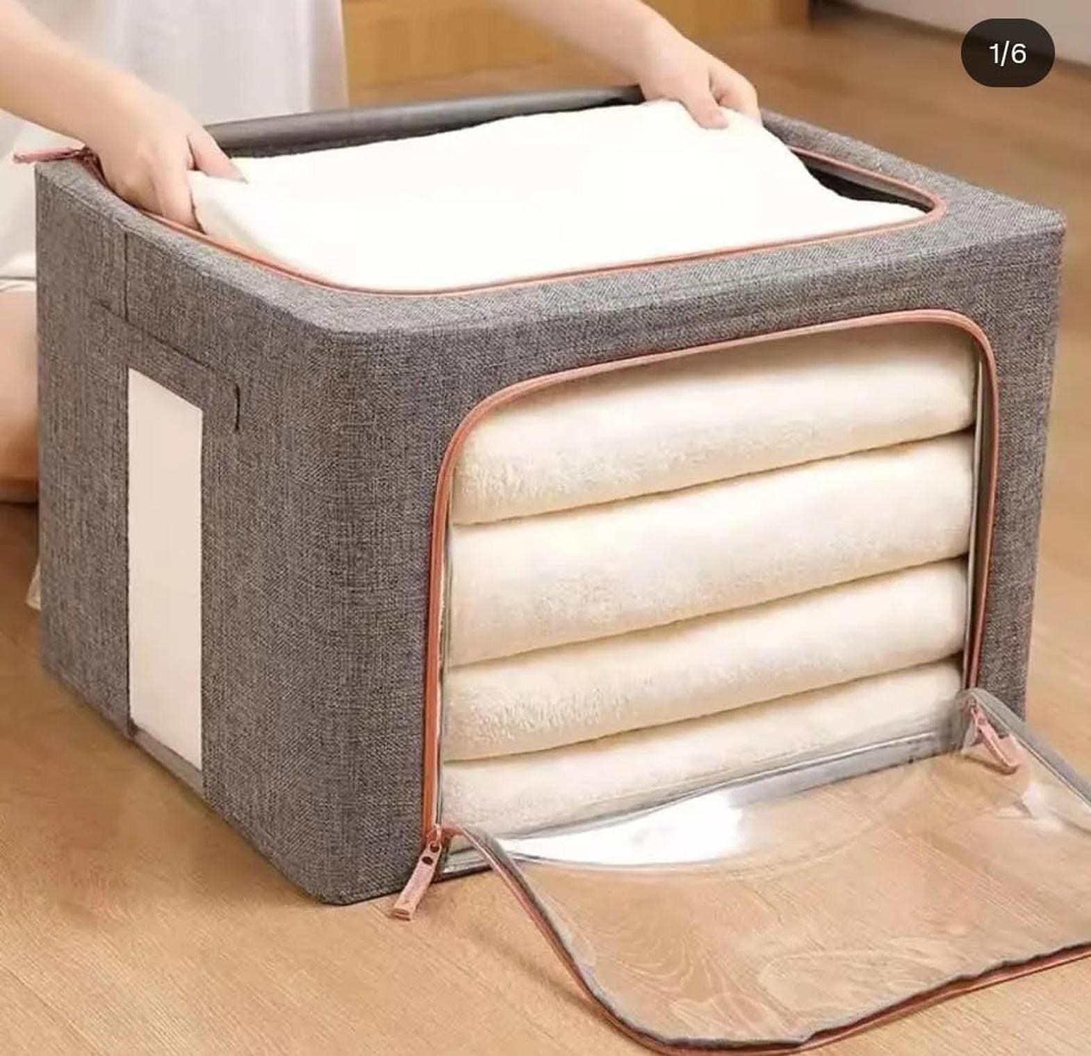 A spacious 100L zipped storage box designed to neatly store clothes, bedding, and other household items.