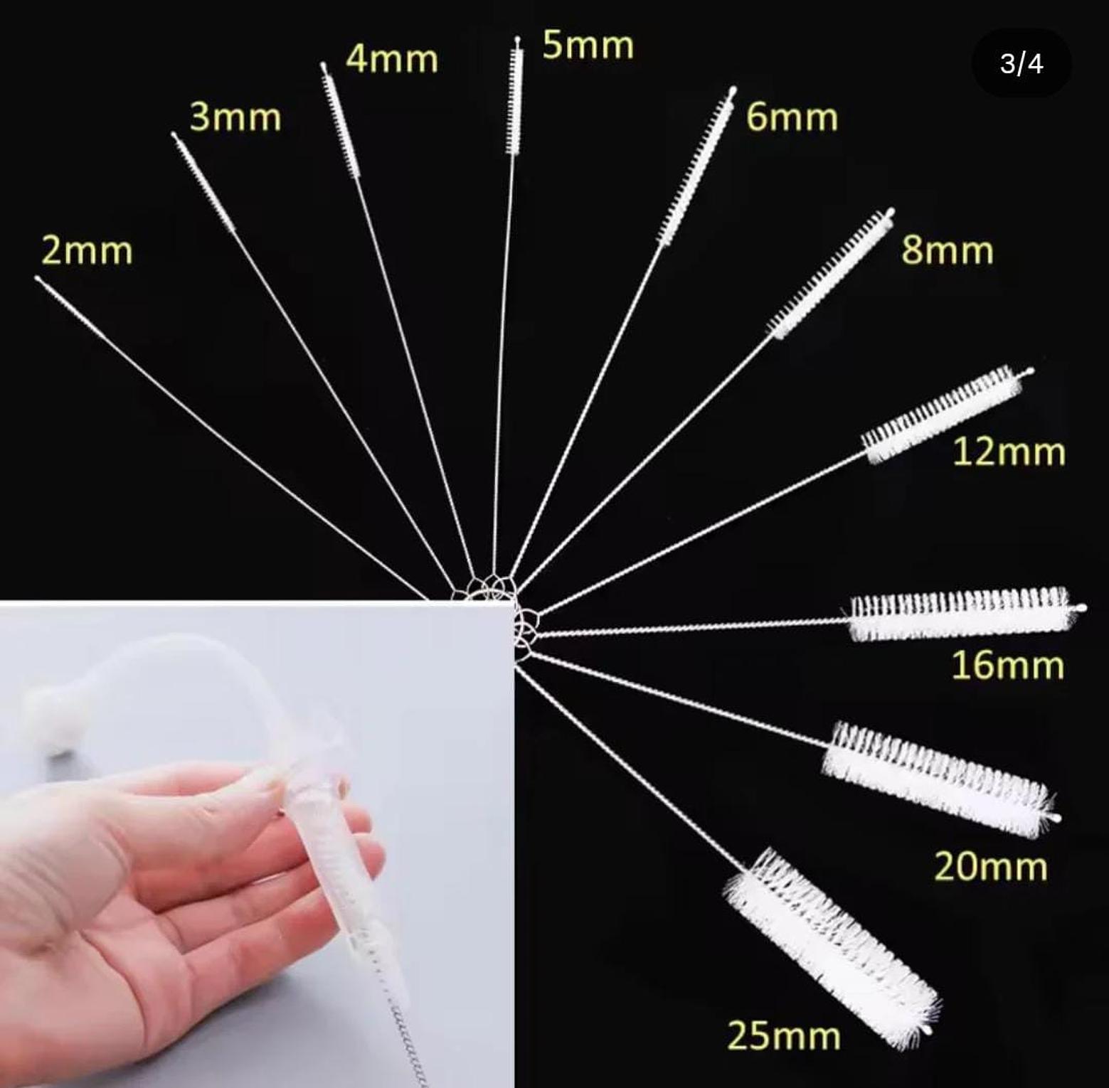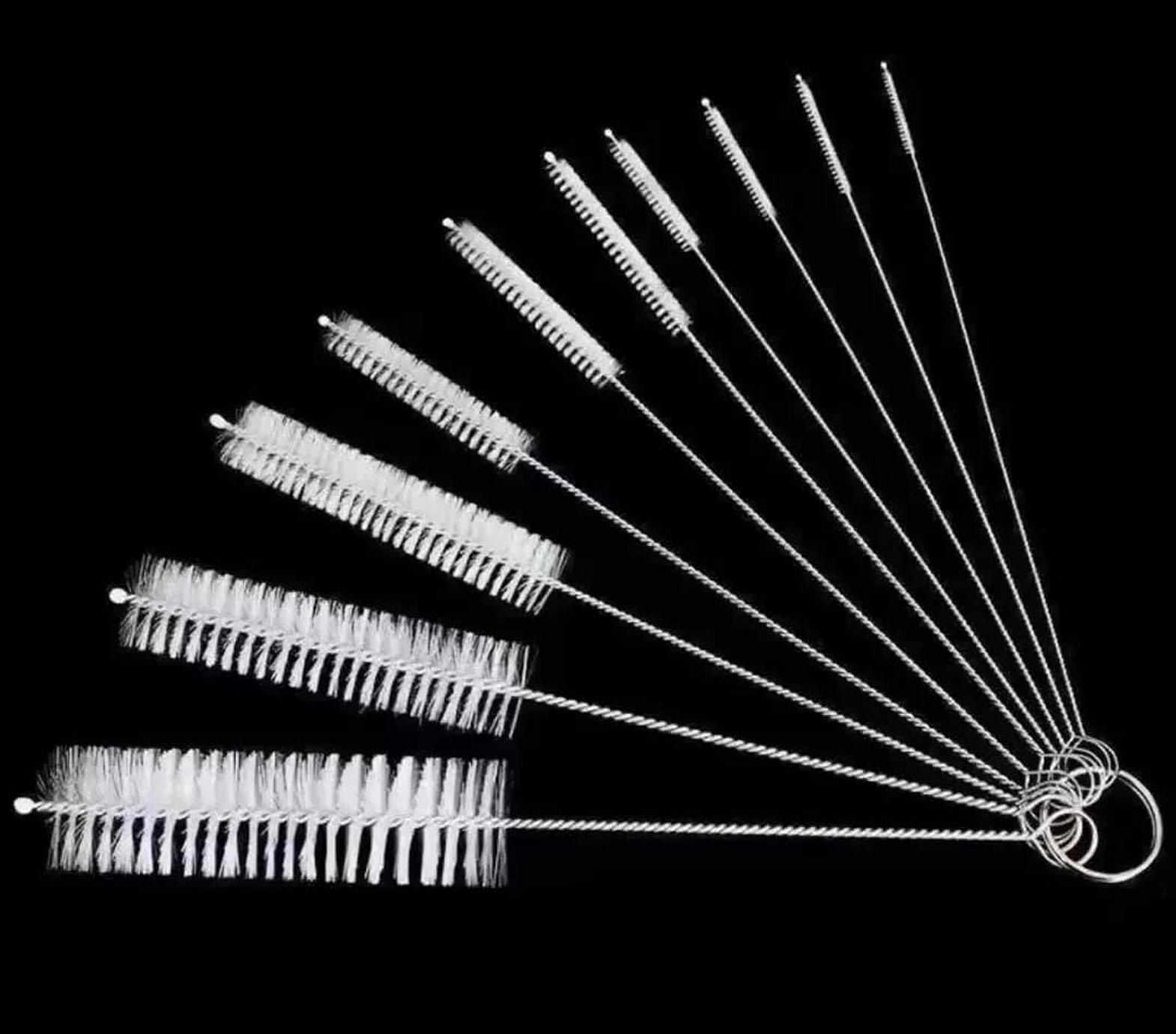 A set of 10 brushes designed to thoroughly clean reusable drinking straws, ensuring hygiene and convenience.