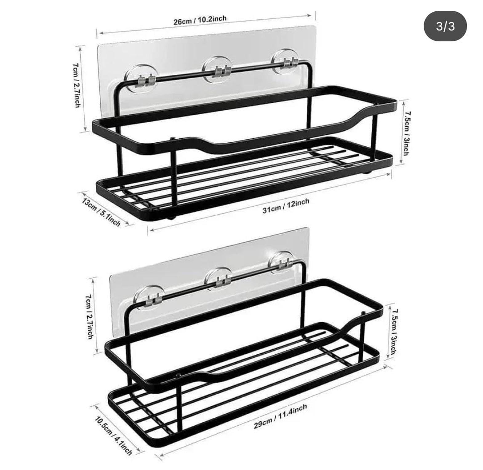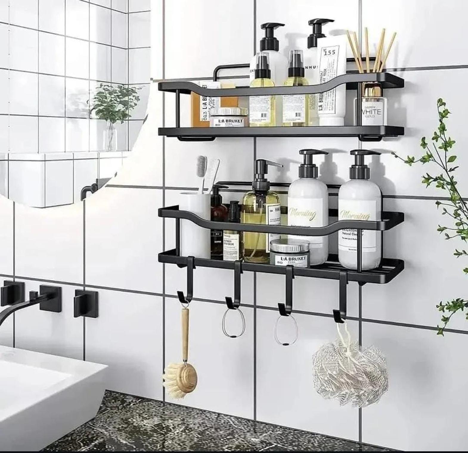 A 2-piece shower caddy shelf set designed to keep toiletries organized and within easy reach.