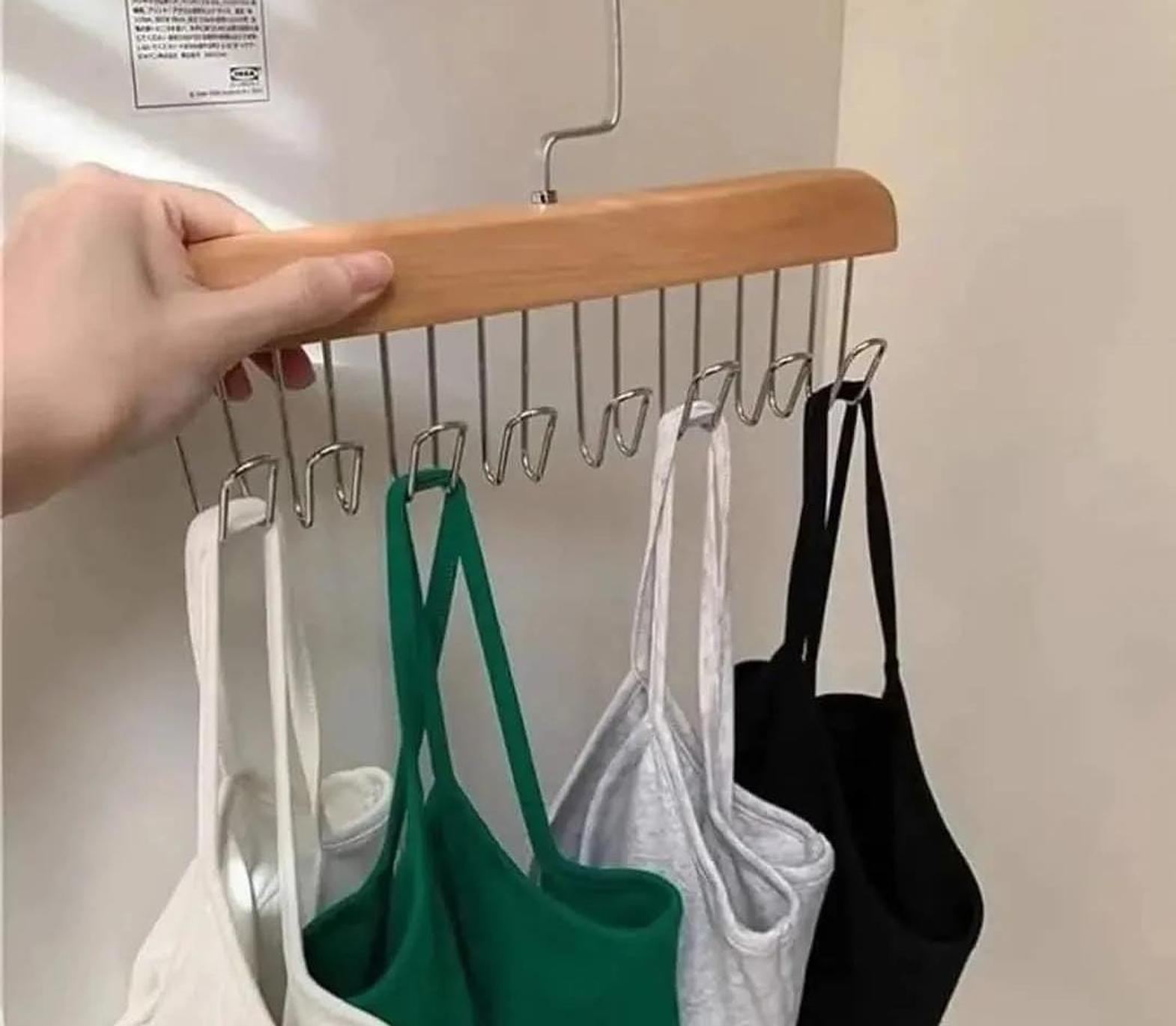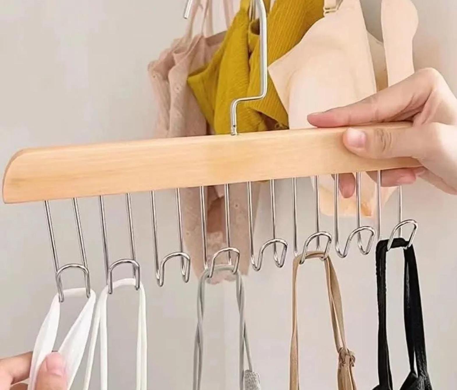 A stylish wooden wall hanger with 8 sturdy hooks, perfect for organizing clothes, bags, keys, towels, and accessories with ease and charm.