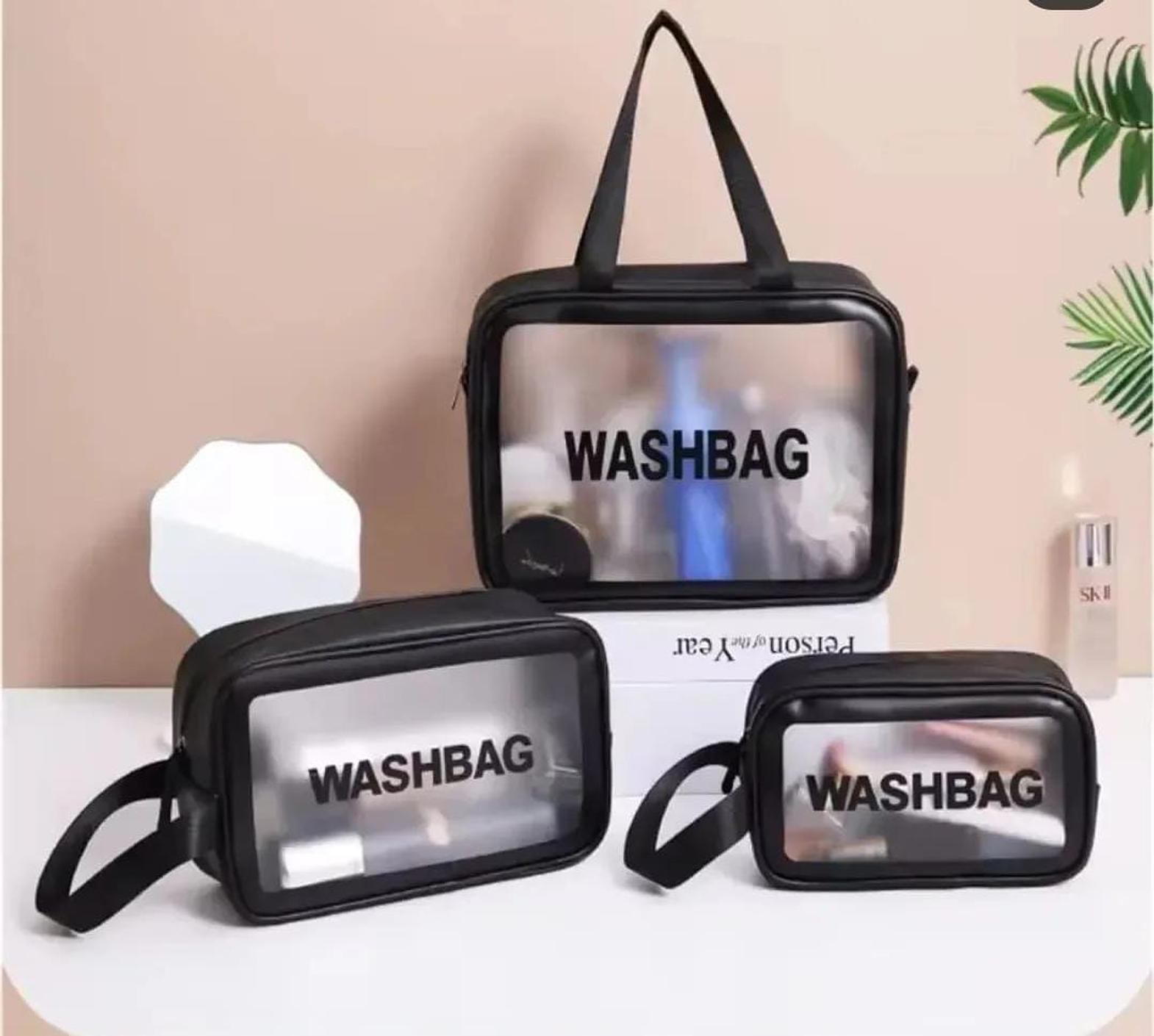 A practical 3-piece waterproof bag set to keep your makeup, toiletries, and travel essentials neatly organized.