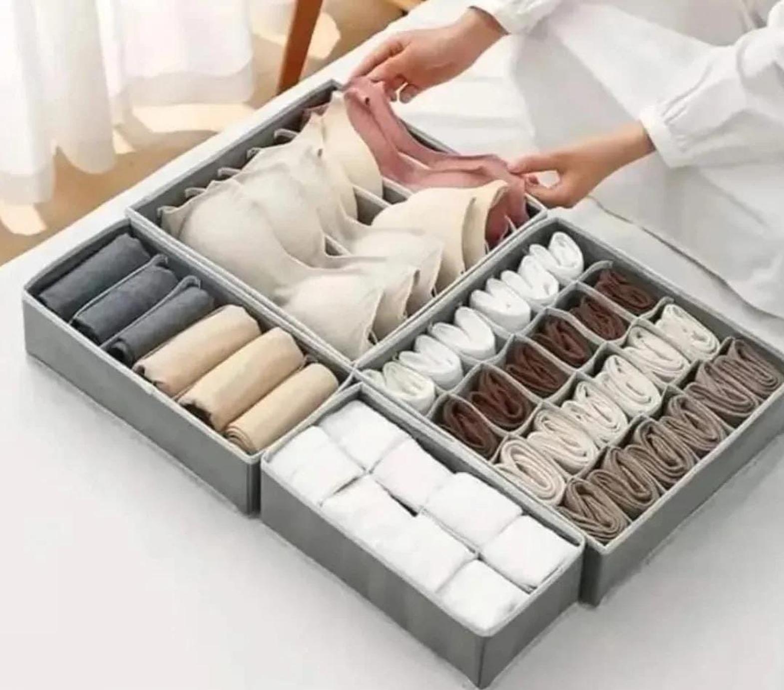 A versatile foldable organizer designed to neatly store bras, panties, socks, and more in one compact unit.