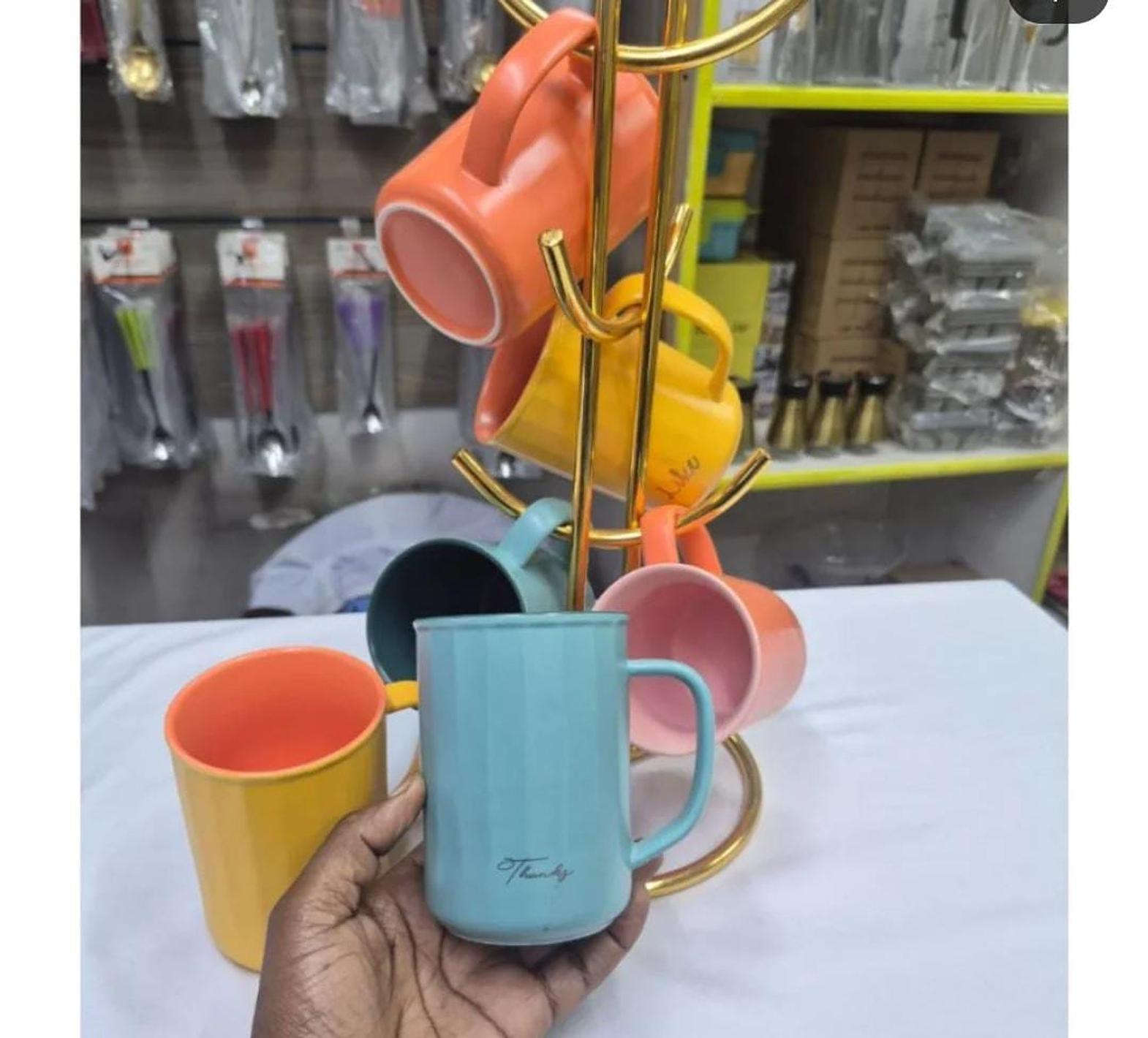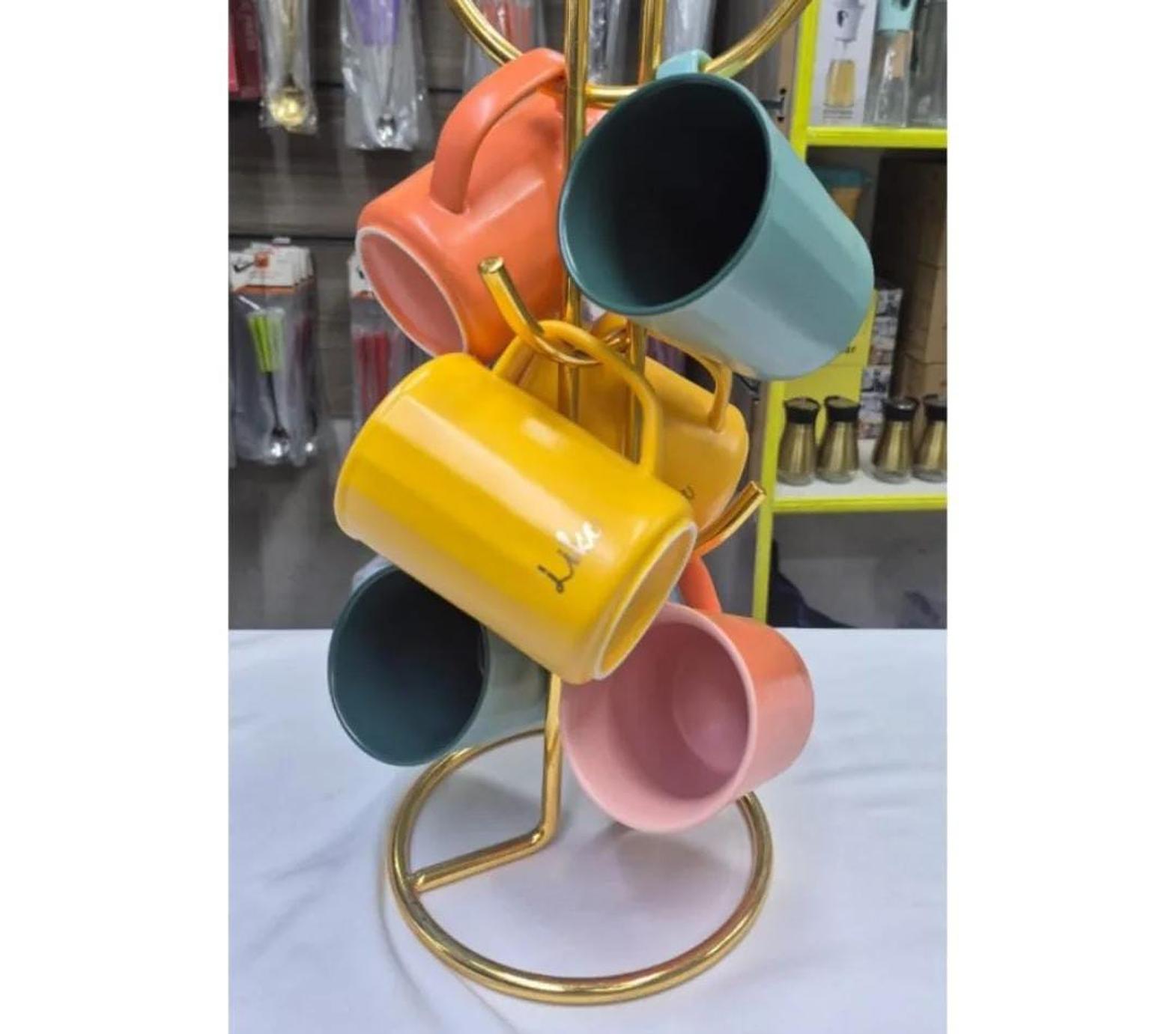 A lively set of six ceramic mugs in bold, eye-catching colors — perfect for adding personality to your daily coffee or tea moments.