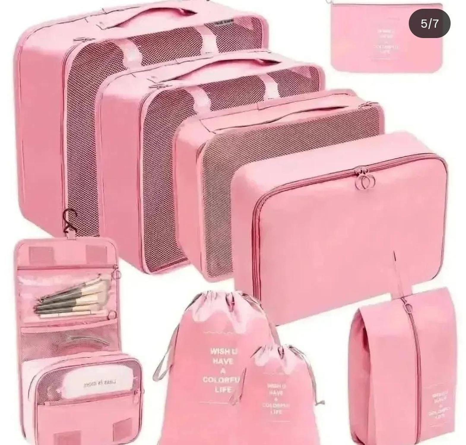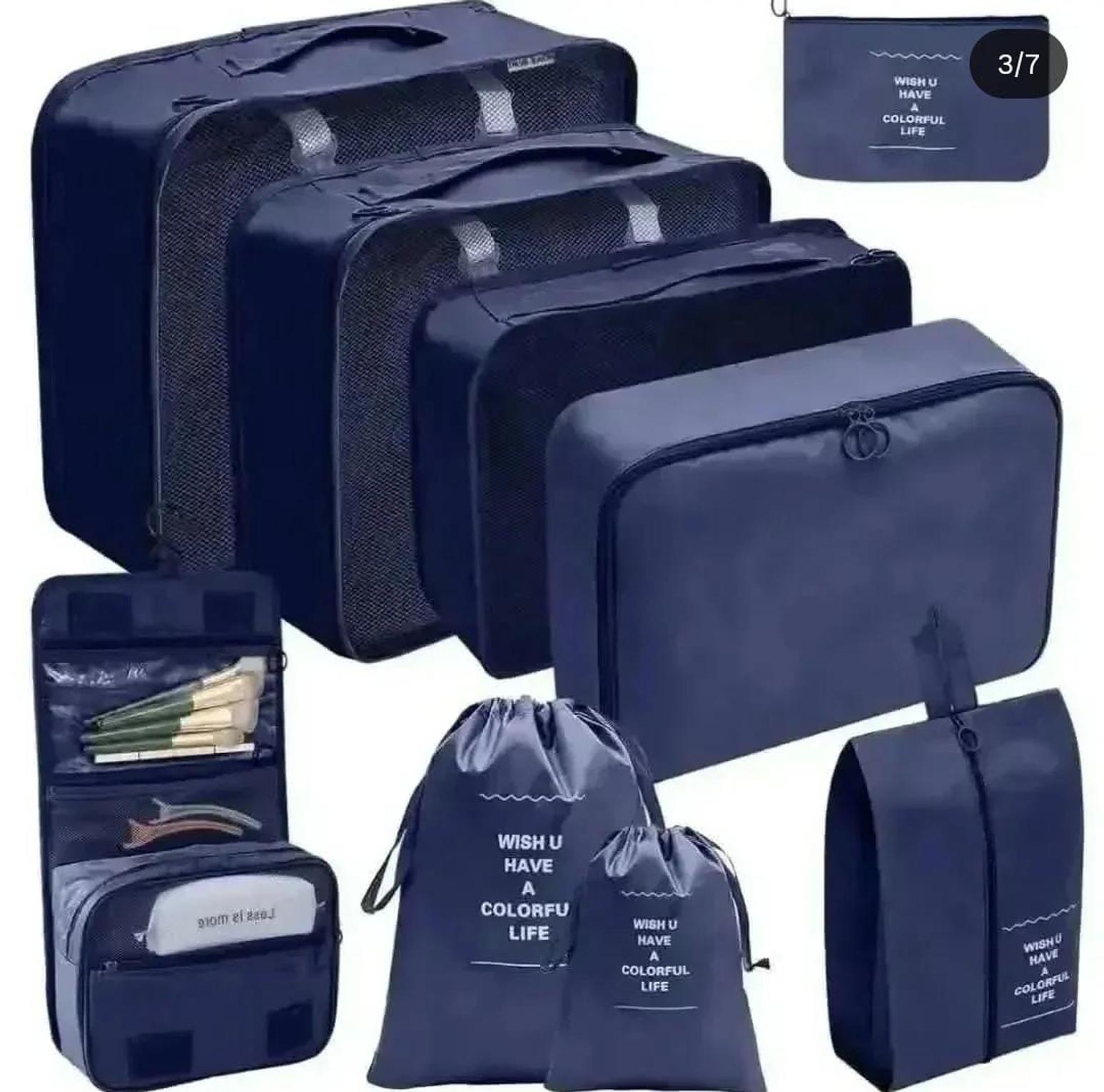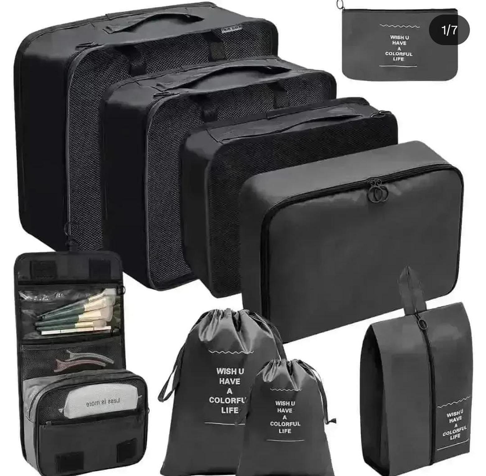 A complete 9-piece organizer set designed to keep your clothes, shoes, and travel essentials neatly packed.