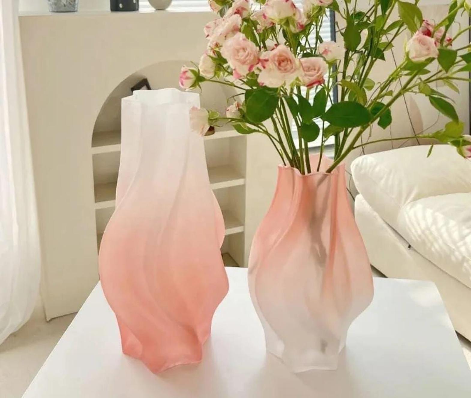 A stylish medium-sized Nordic glass vase that blends simplicity and sophistication, perfect for displaying fresh or dried flowers.