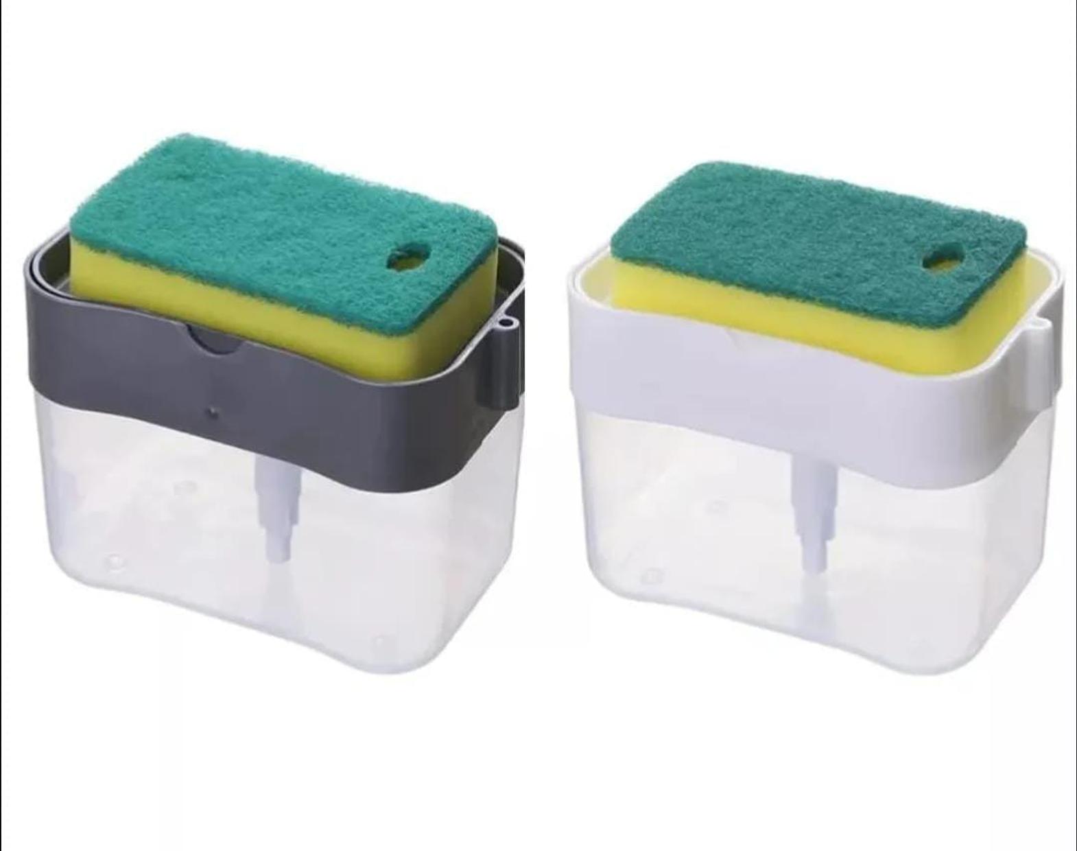Wash smarter with a 2-in-1 soap dispenser and sponge holder for effortless cleaning