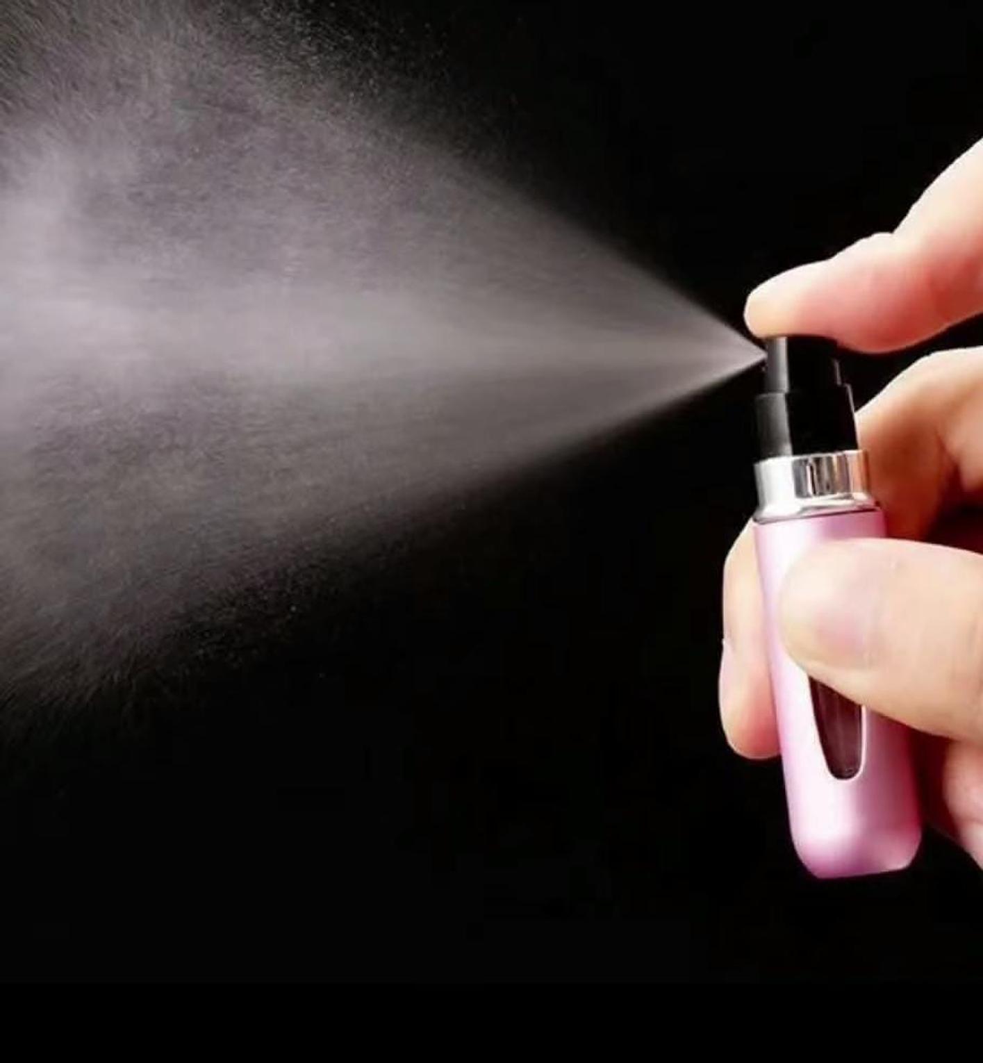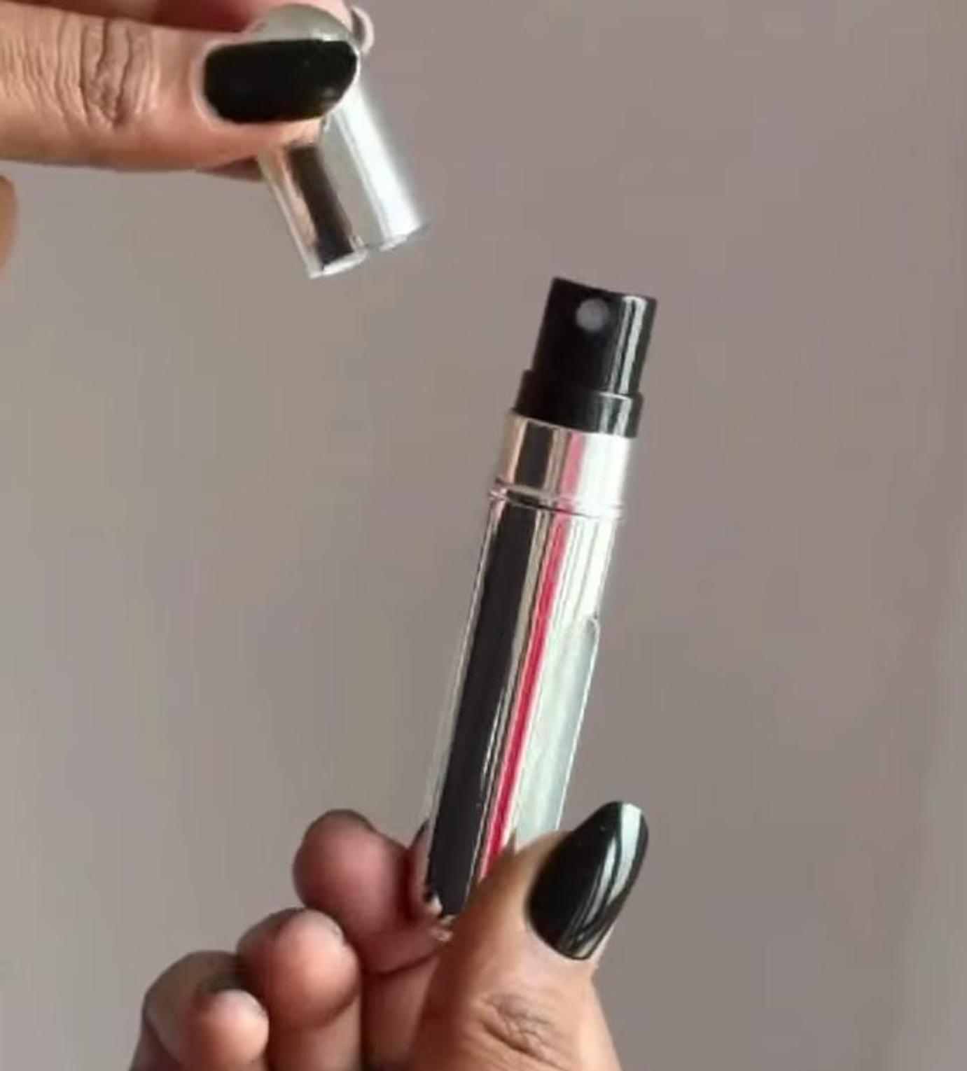 A sleek, pocket-sized spray bottle designed to carry your favorite fragrance anywhere with ease.