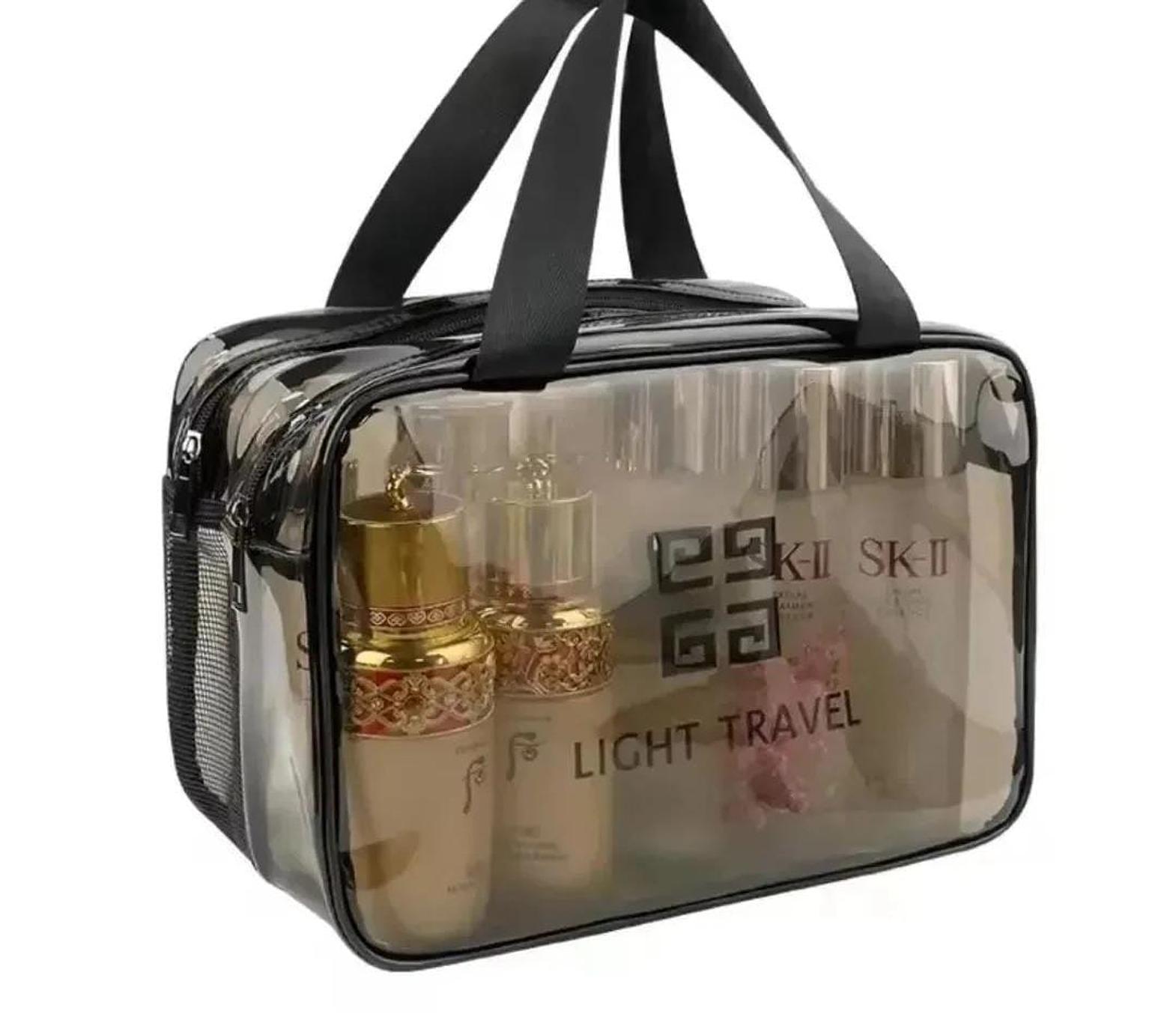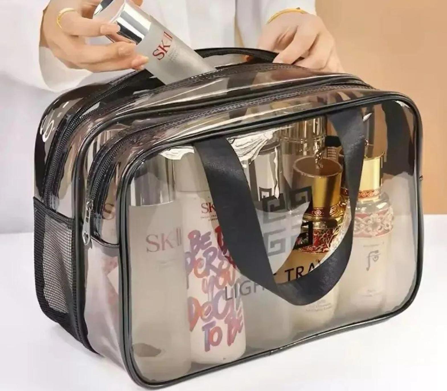 A compact yet roomy cosmetic bag designed to neatly organize your makeup, toiletries, and essentials wherever you go.