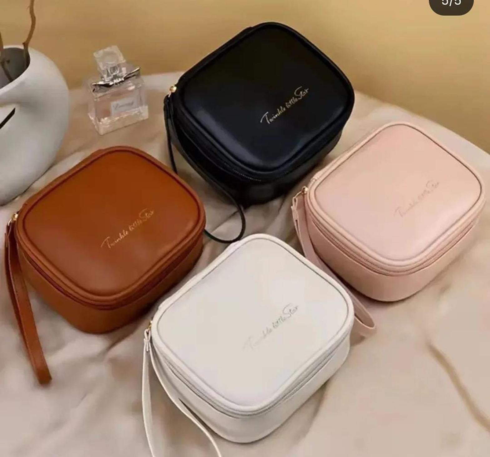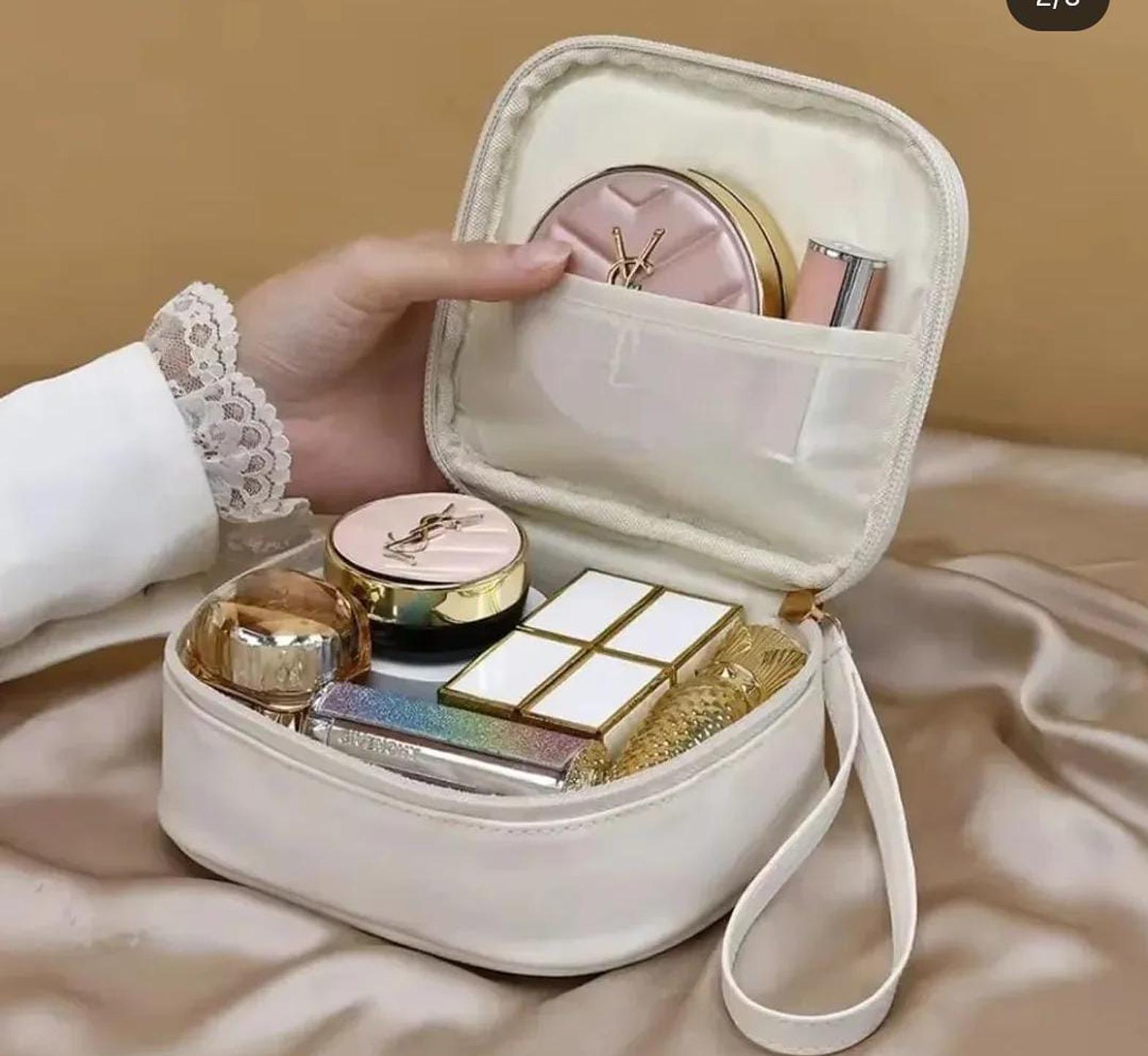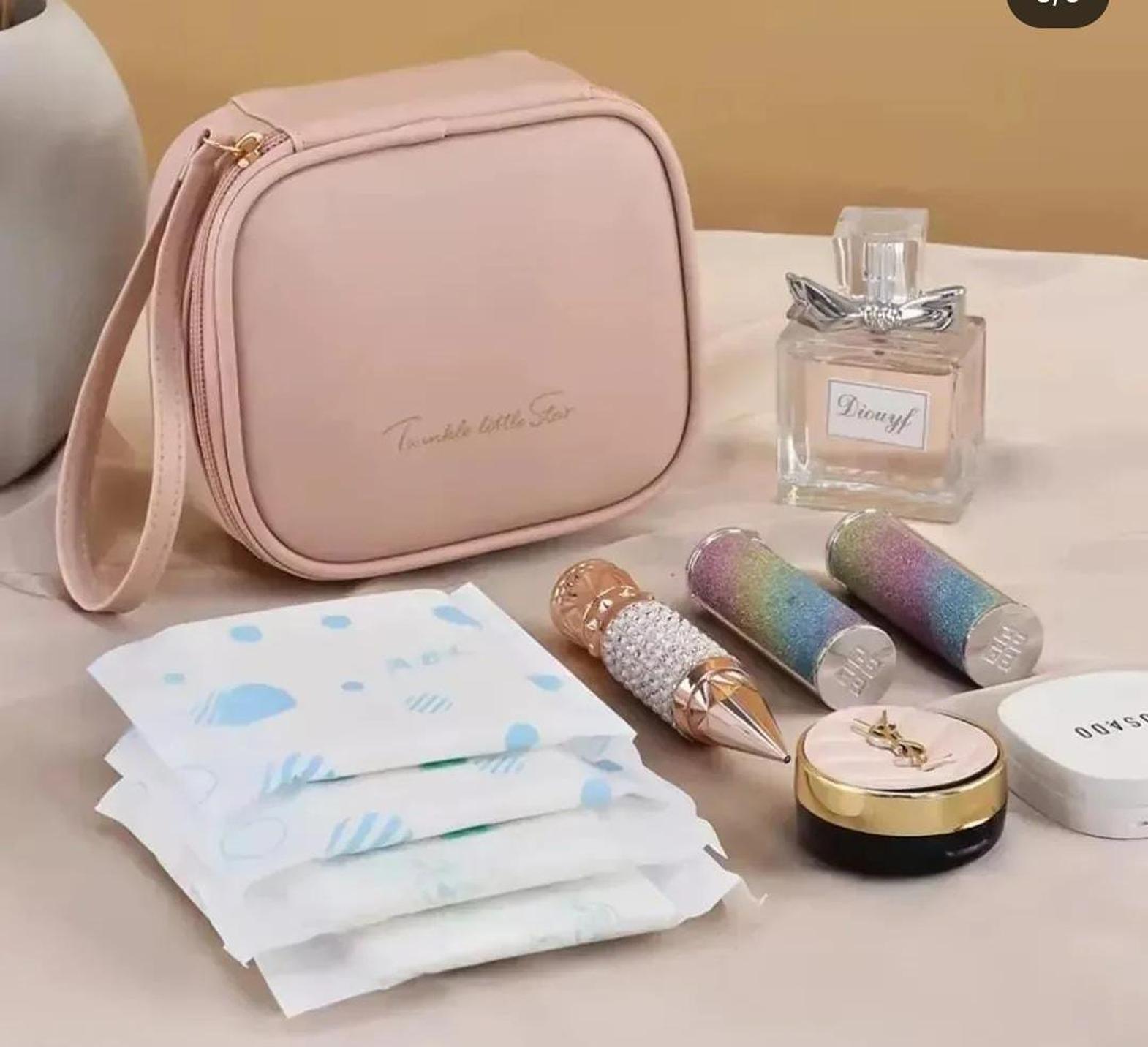 A stylish, slim zipper pouch designed to discreetly carry pads, tampons, lotion, and other small essentials.